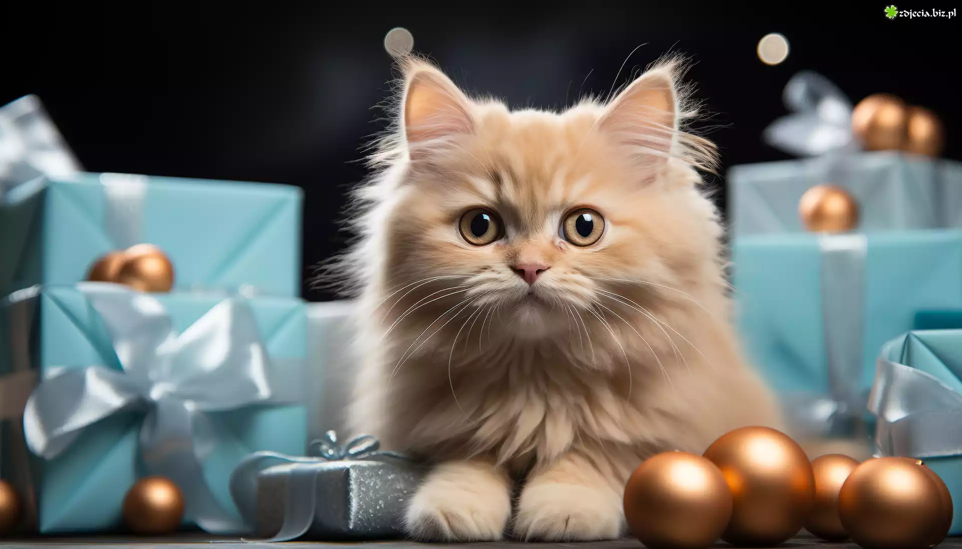 Zdjęcie Biszkoptowy, Mały, Kot, Prezenty, Bombki