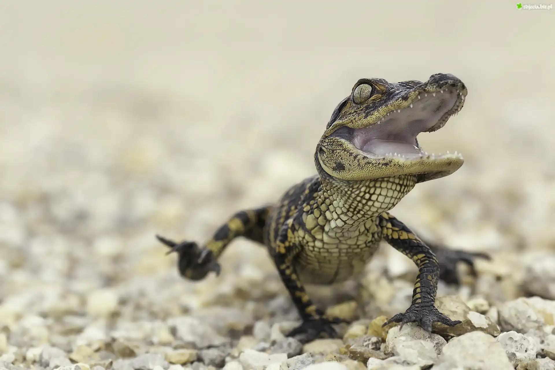 Zdjęcie Mały, Biegnący, Krokodyl, Kamienie