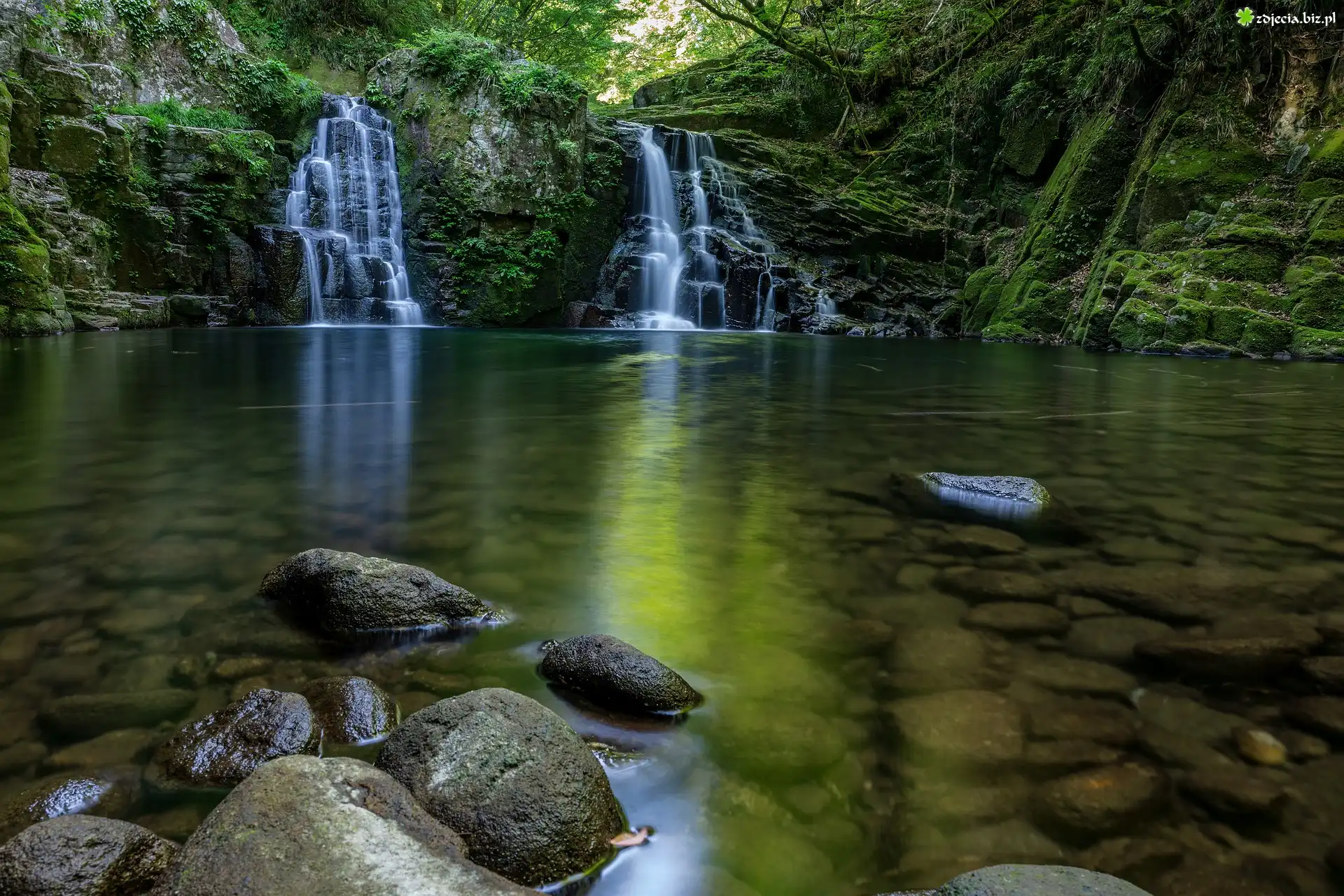 Zdjęcie Mały, Wodospad, Rzeka, Las, Kamienie