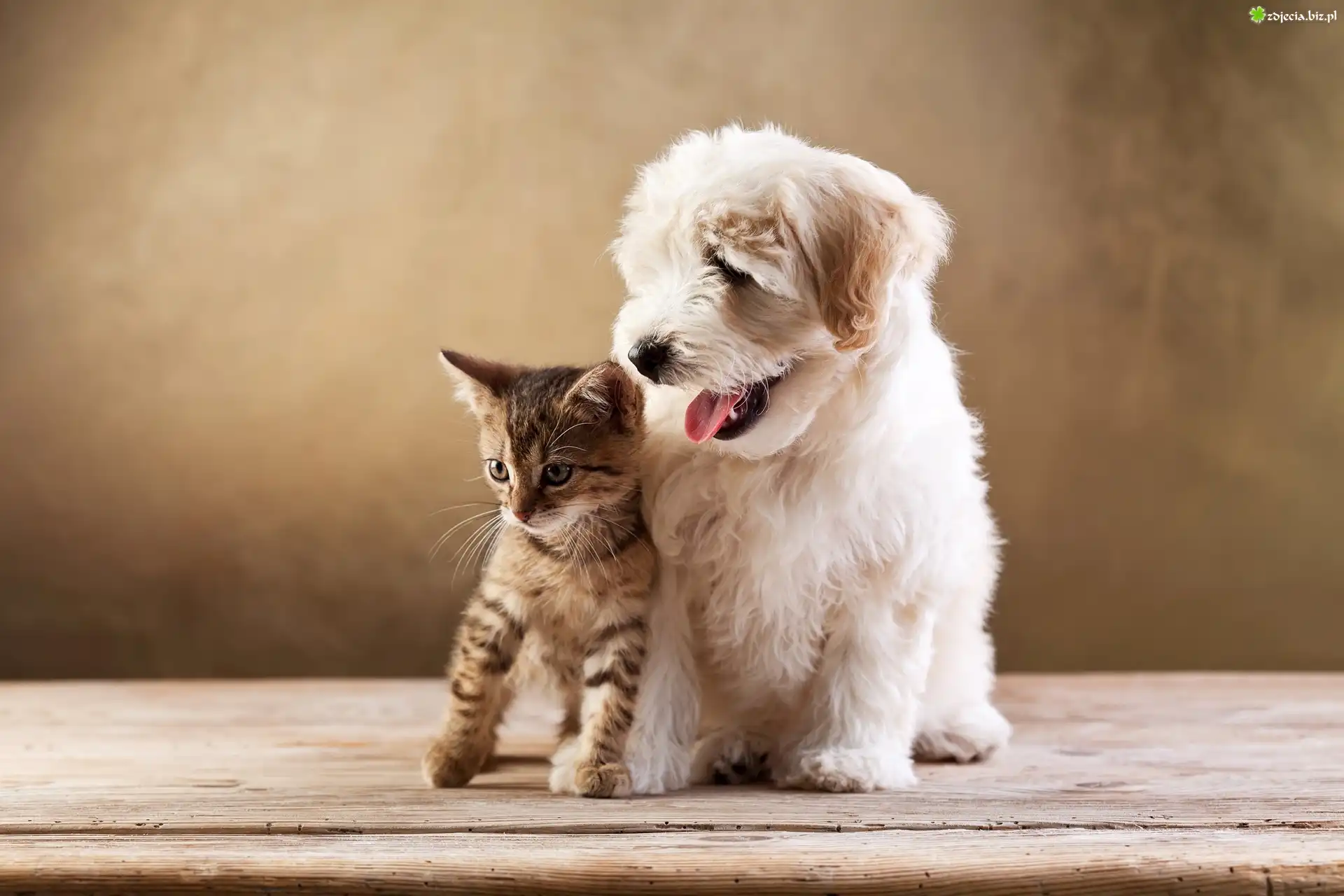 Zdjęcie Mały, Kot, Pies, Szczeniak