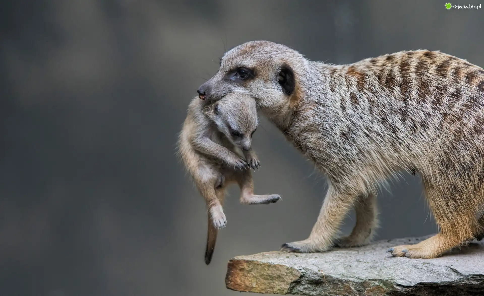 Zdjęcie Mama, Surykatka, Młody, Potomek, Skała