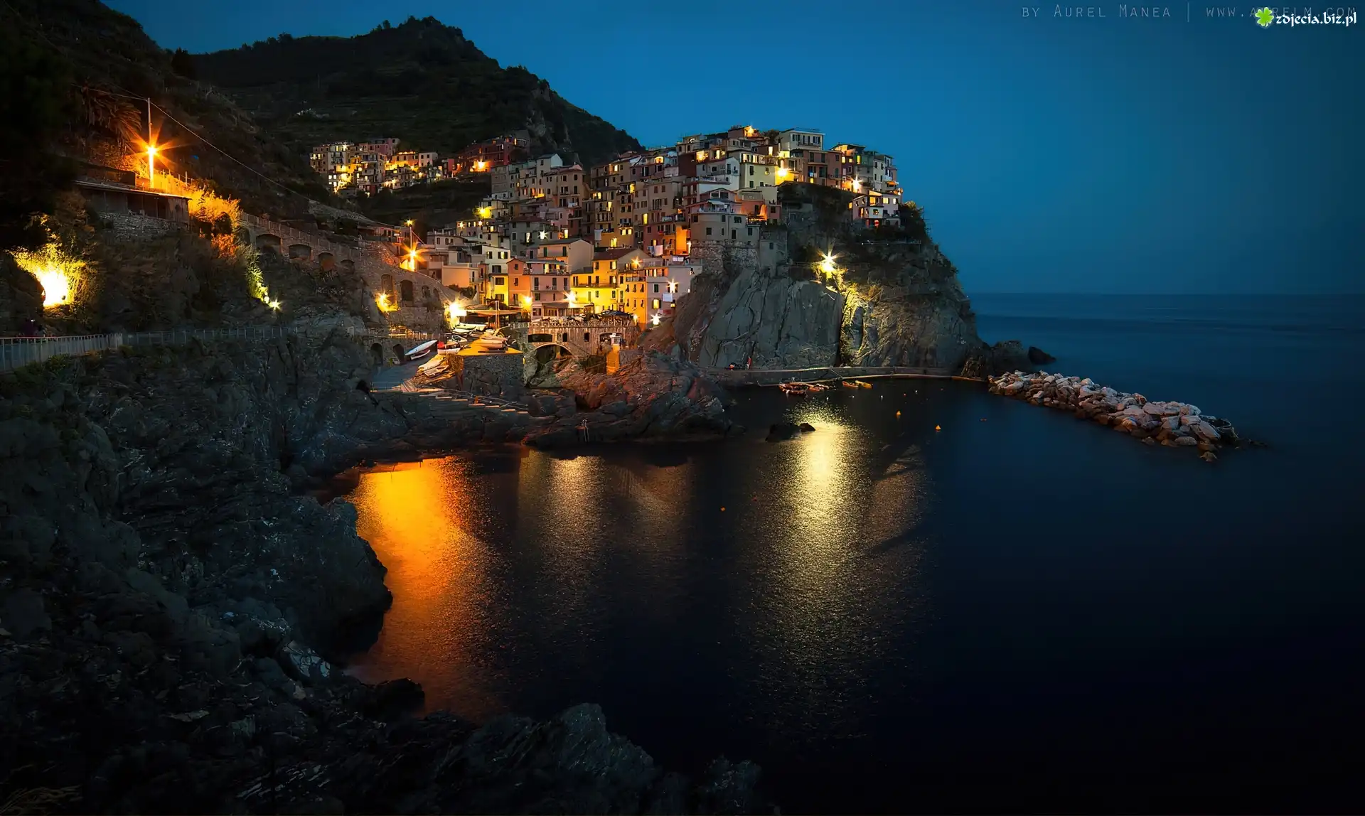 Zdjęcie Manarola, Włochy, Wybrzeże, Noc