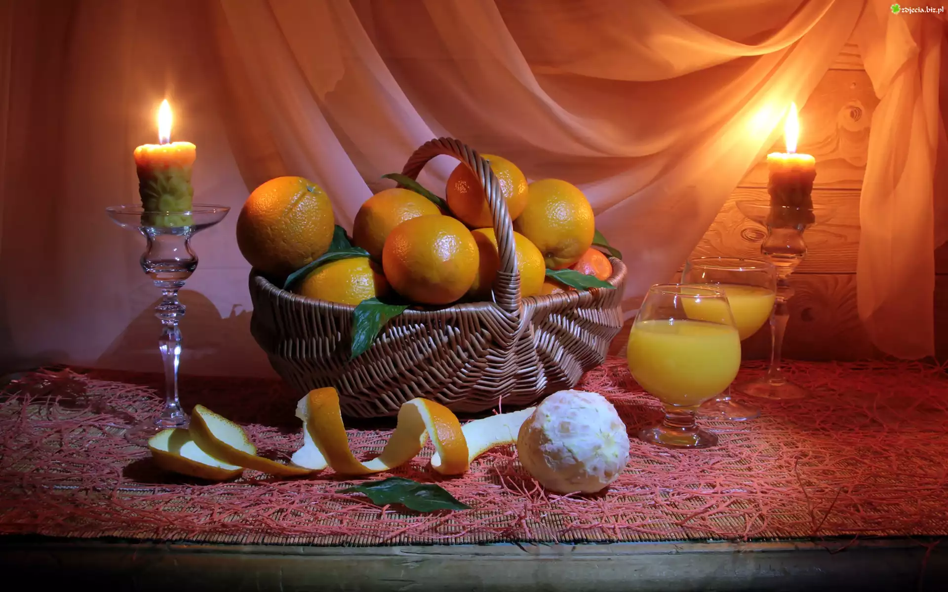 Zdjęcie, Mandarynki, Koszyk, Sok, Świece