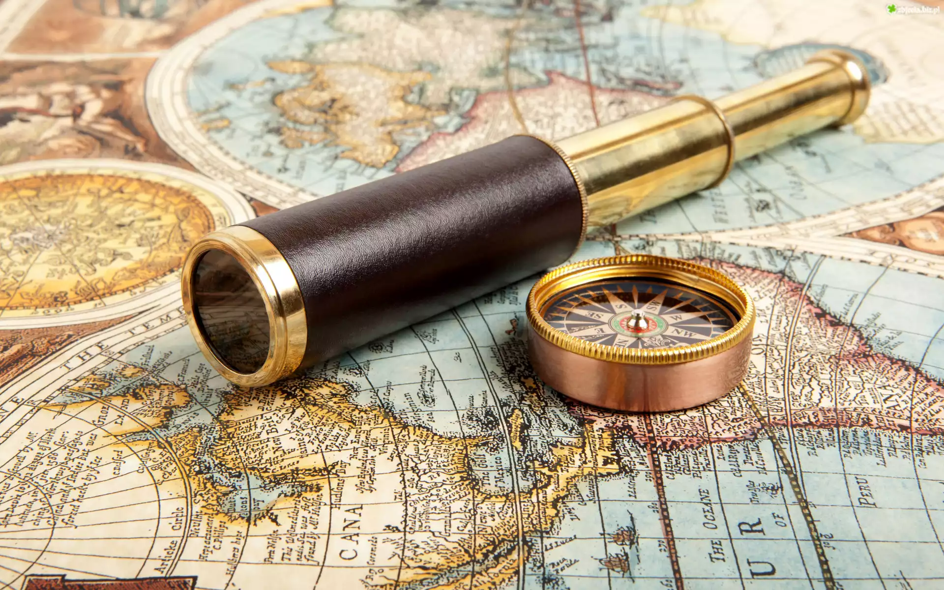 Zdjęcie Mapa, Kompas, Luneta, Podróż, Kompozycja