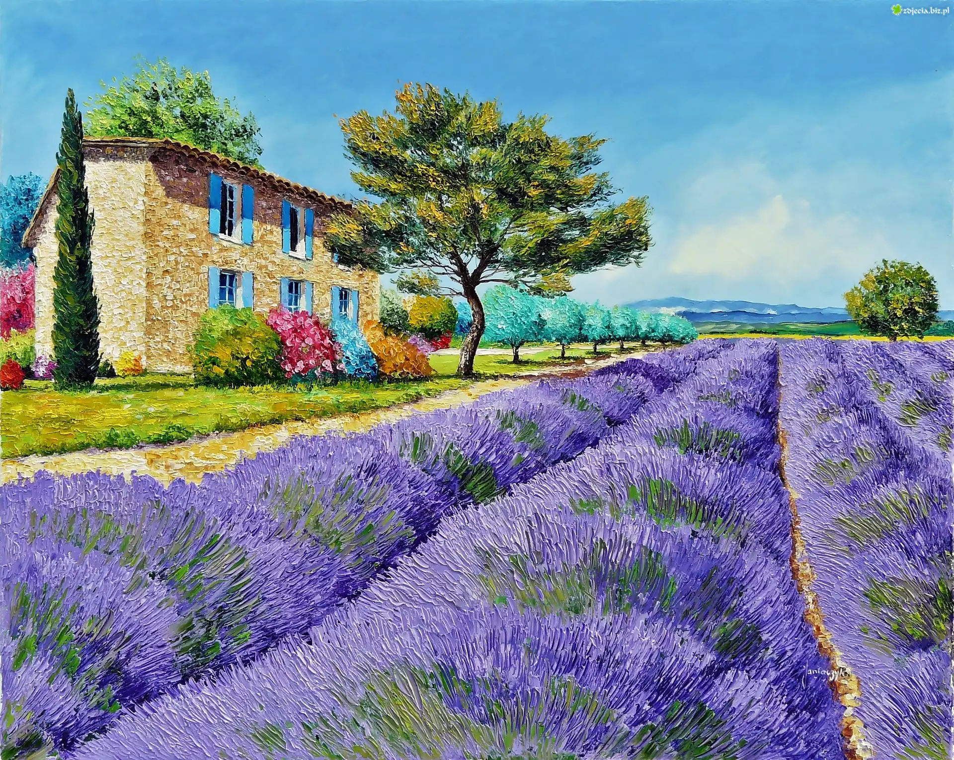 Zdjęcie Jean, Marc, Janiaczyk, Dom, Pole, Lawendy, Reprodukcje obrazów