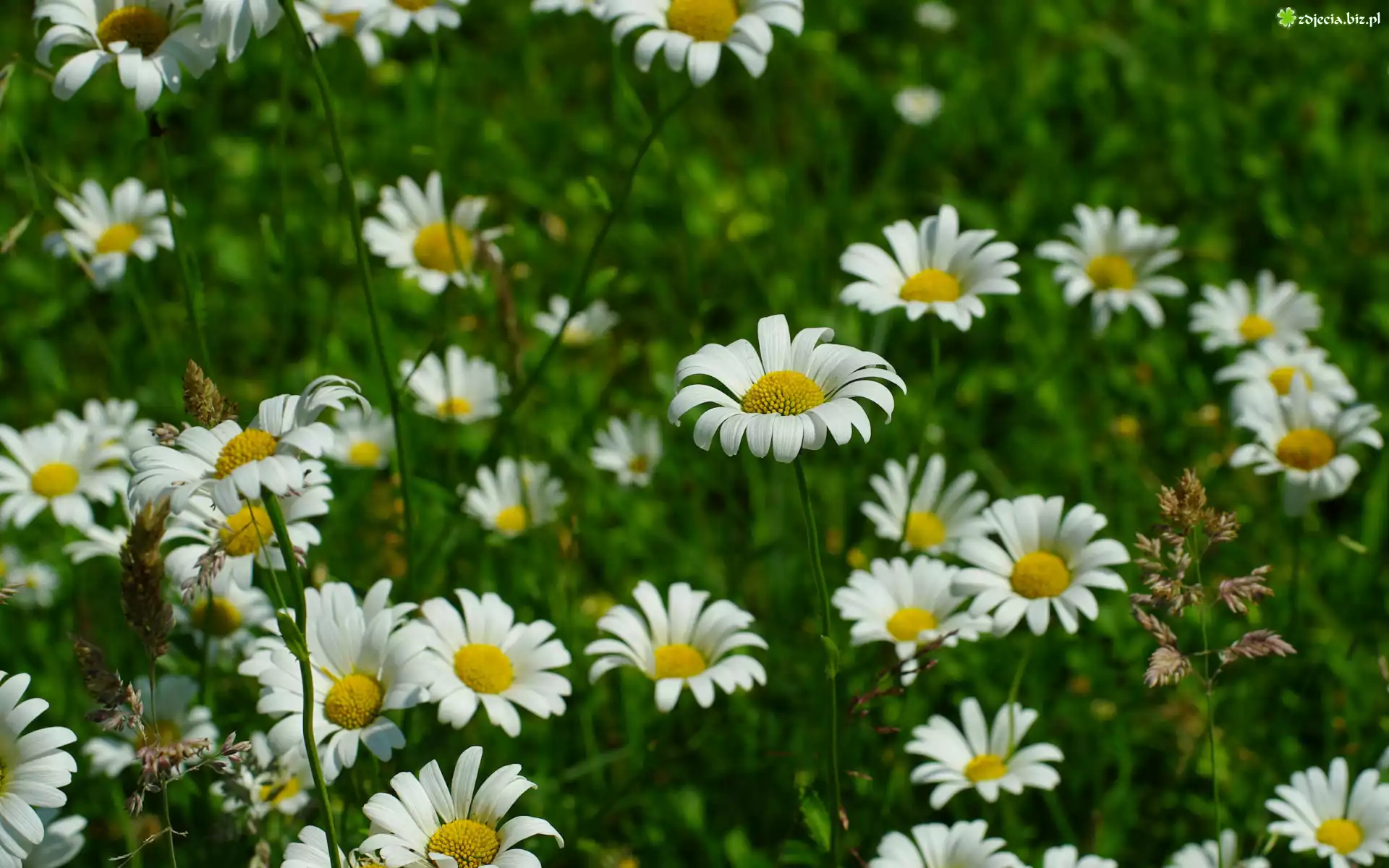 Zdjęcie Łąka, Białe, Kwiaty, Margerytki, Trawa