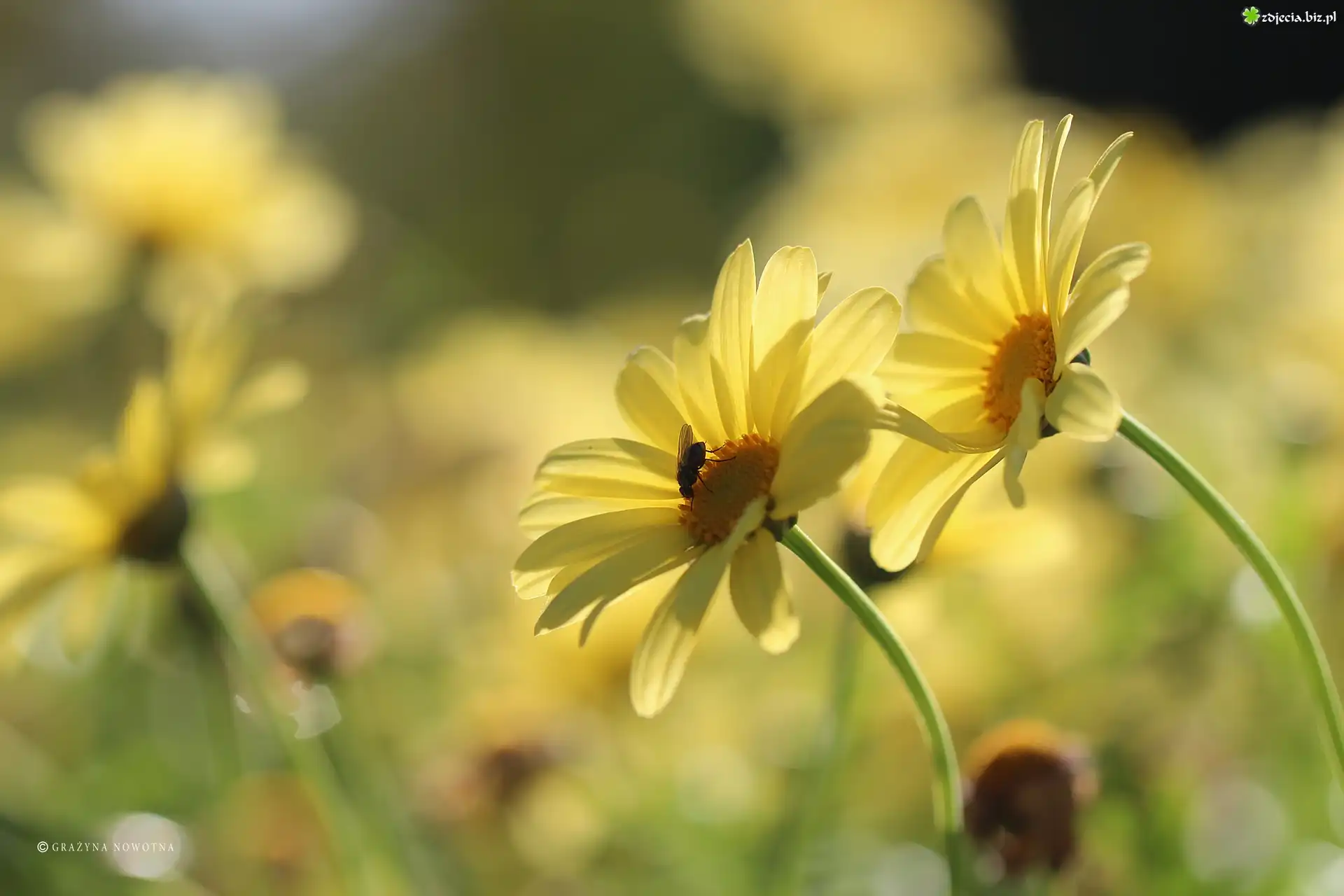 Zdjęcie Żółte, Margerytki, Mucha