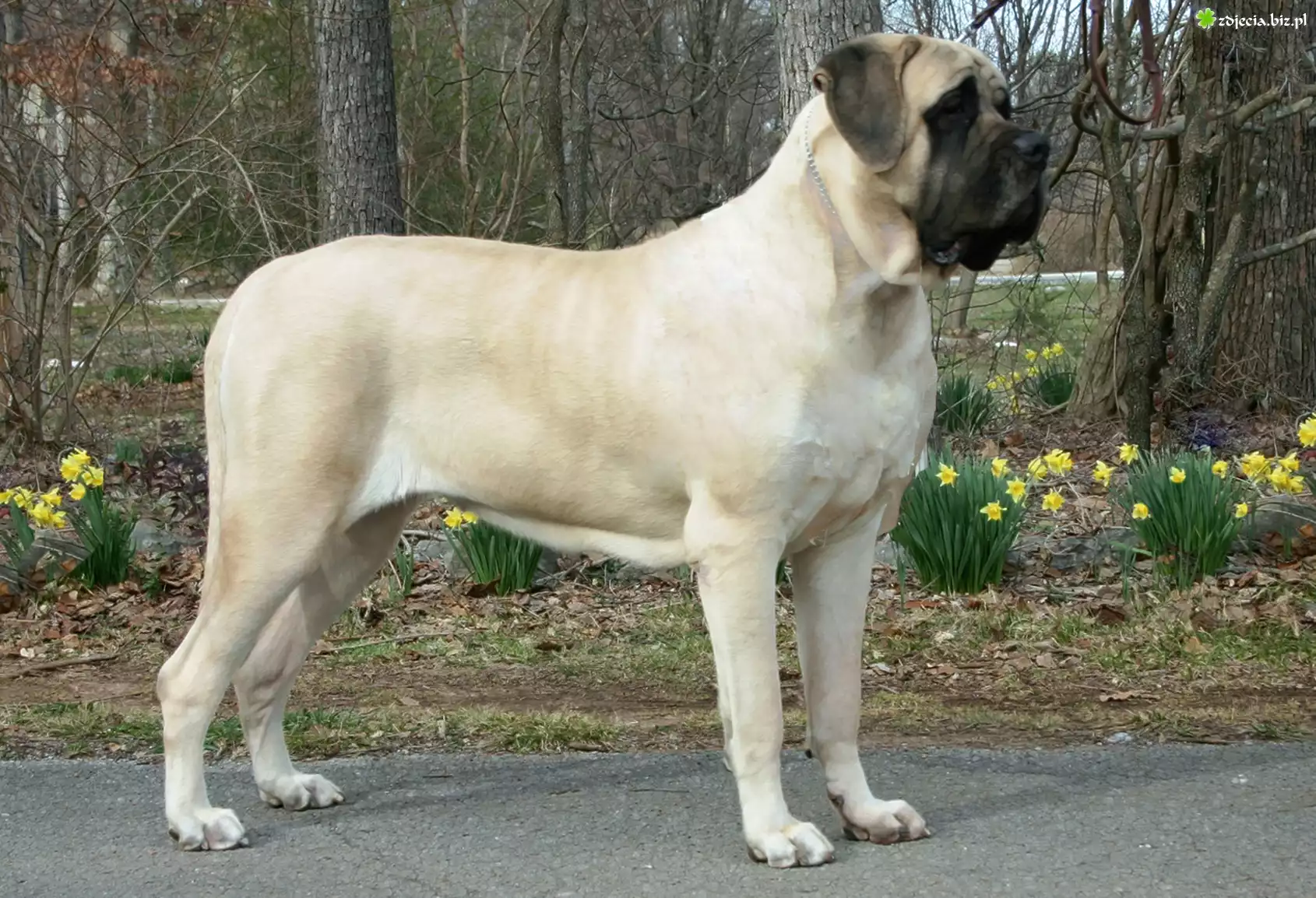Zdjęcie Mastif angielski, Mastiff, żółte, kwiatki