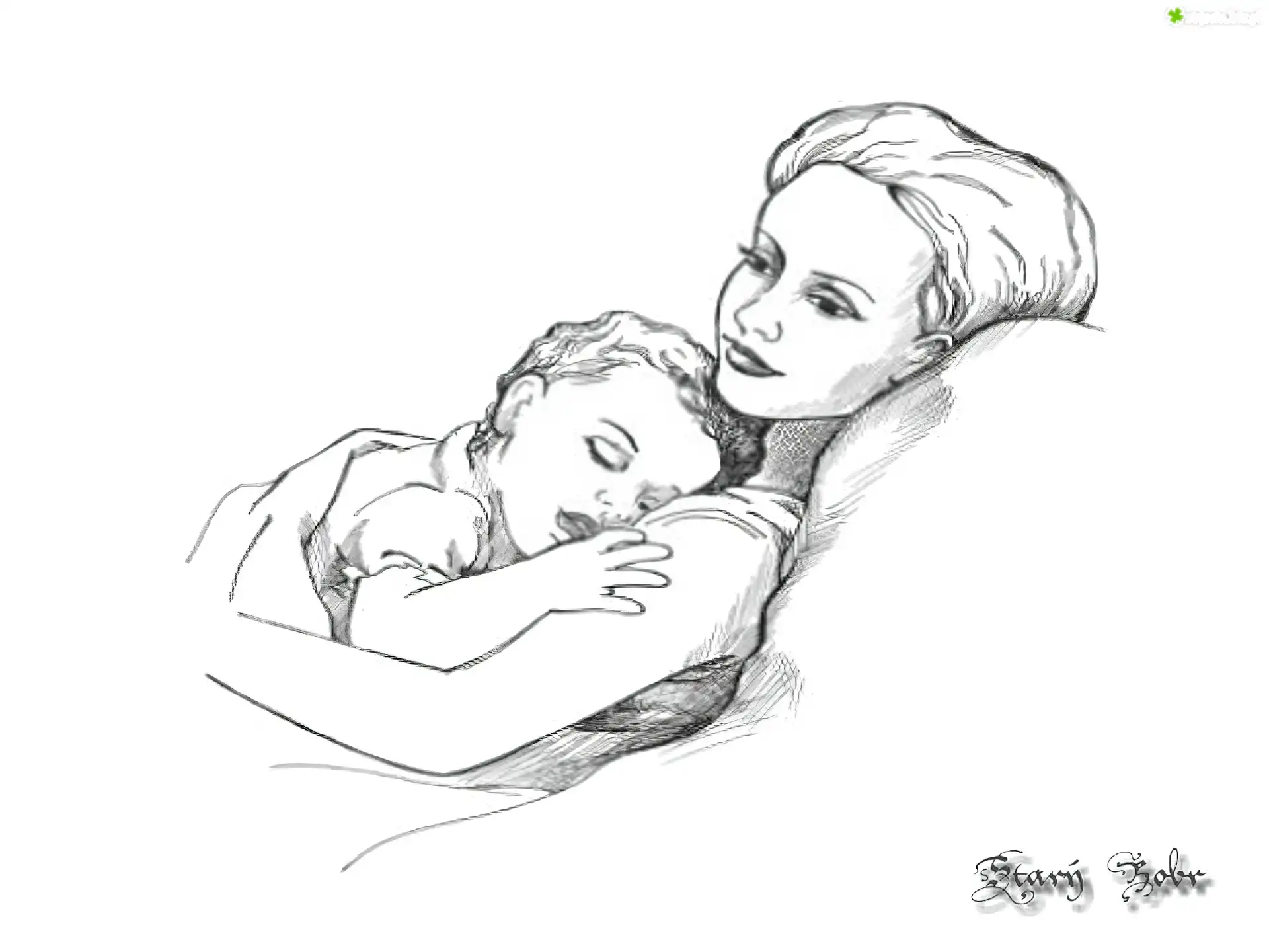 Zdjęcie Matka, Śpiące, Dziecko, Szkic