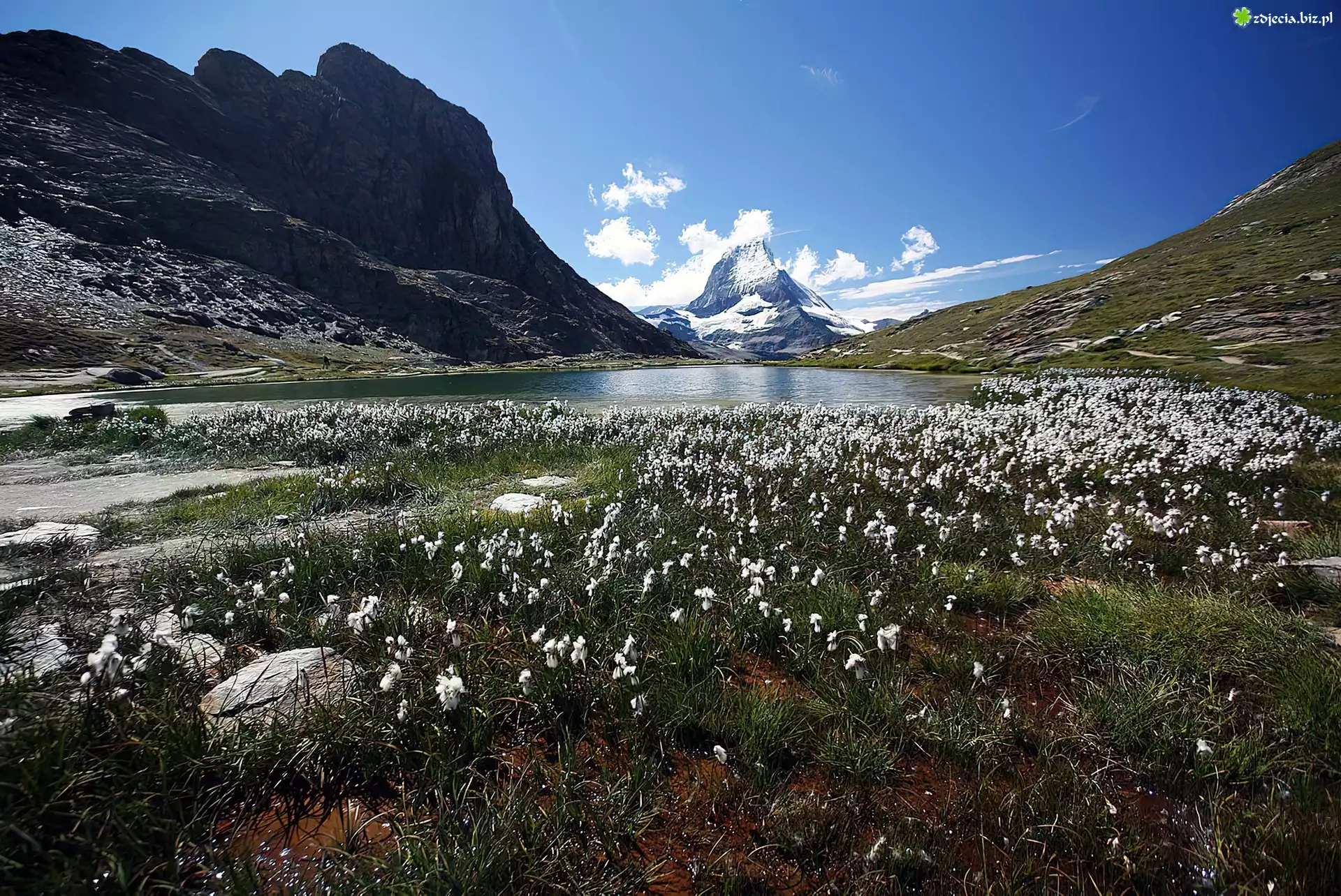 Zdjęcie Łąka, Jeziorko, Góry, Matterhorn, Szwajcaria