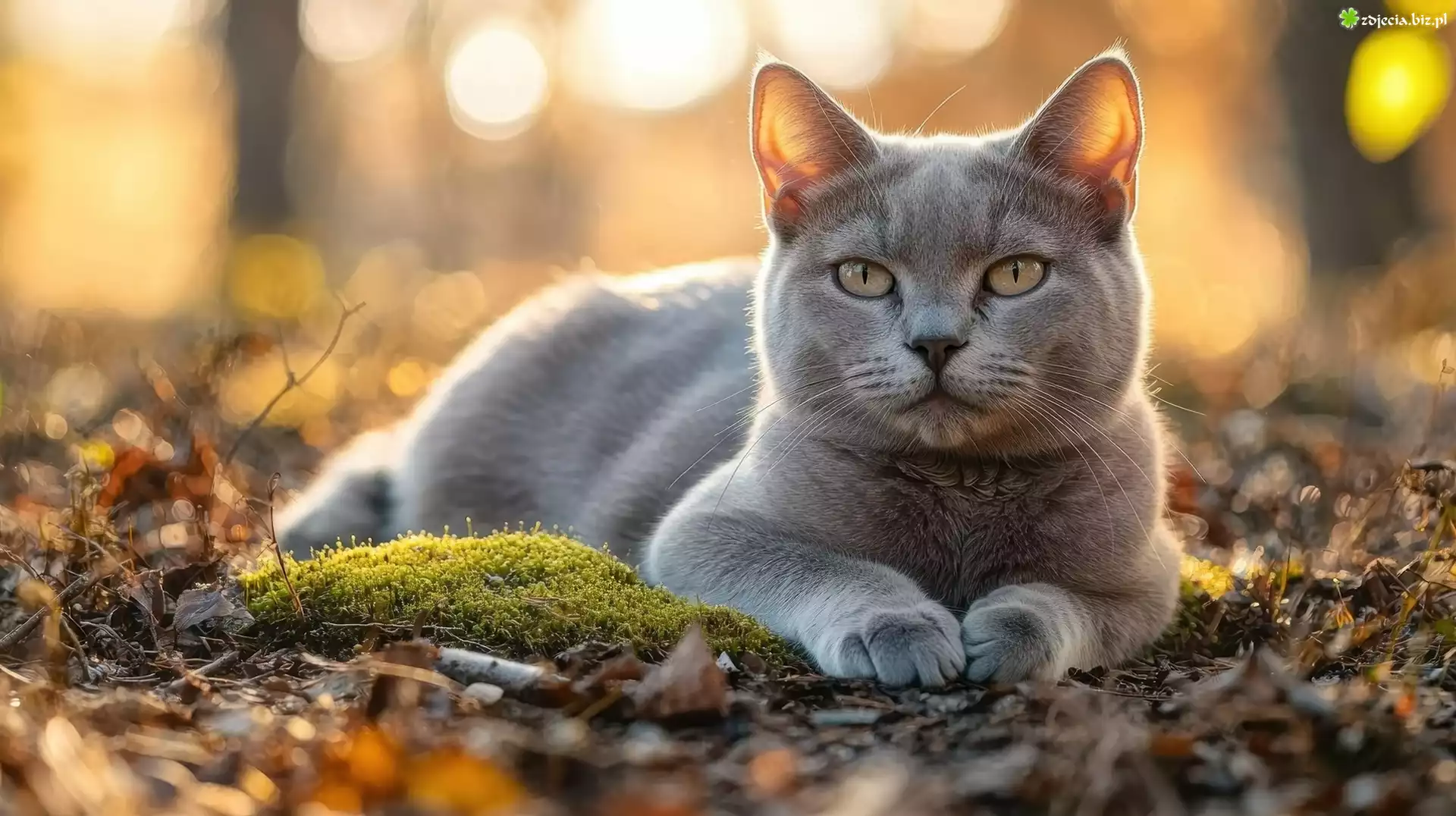 Zdjęcie, Szary, Kot, Leżący, Mech