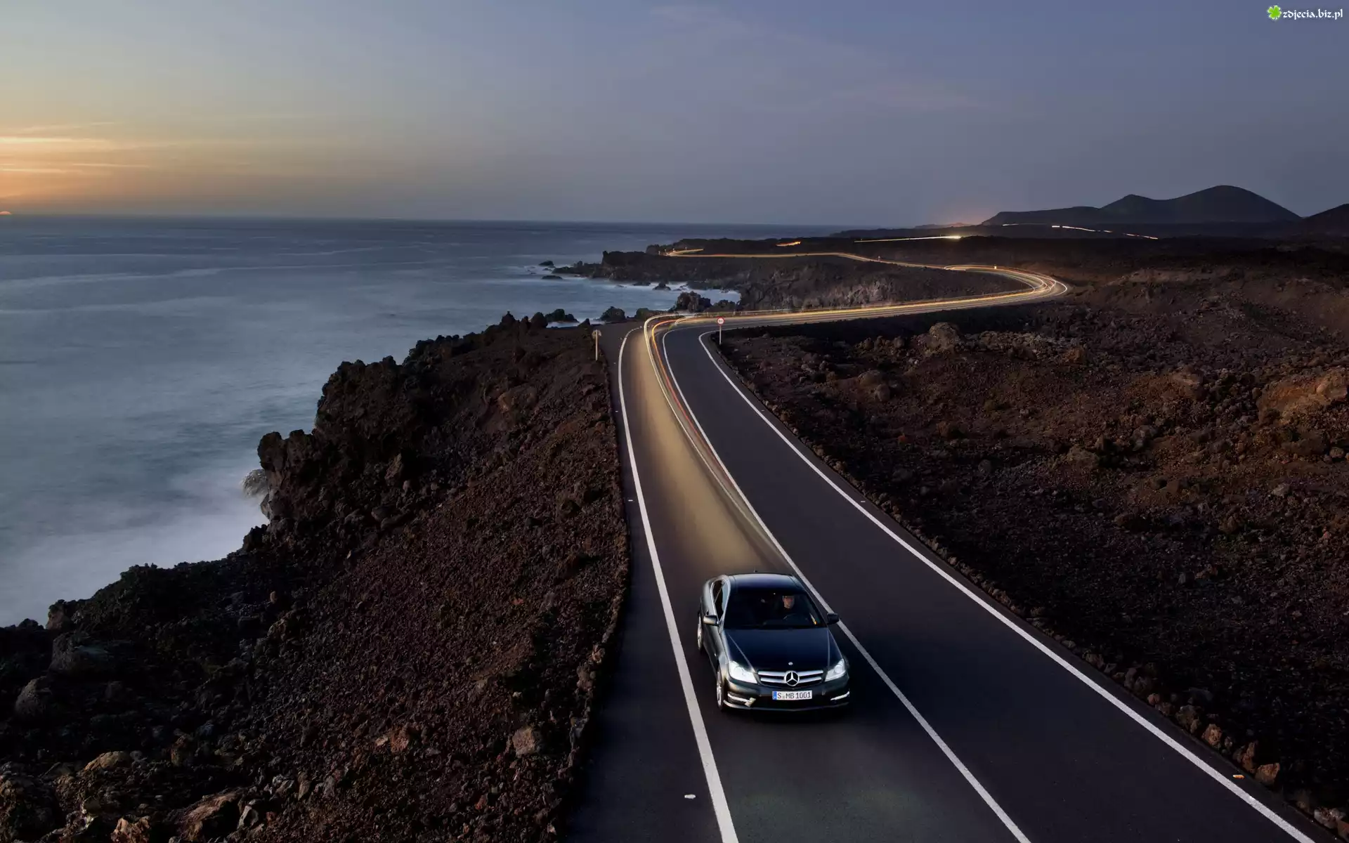 Zdjęcie Mercedes, Droga, Wybrzeże, Zachód, Słońca