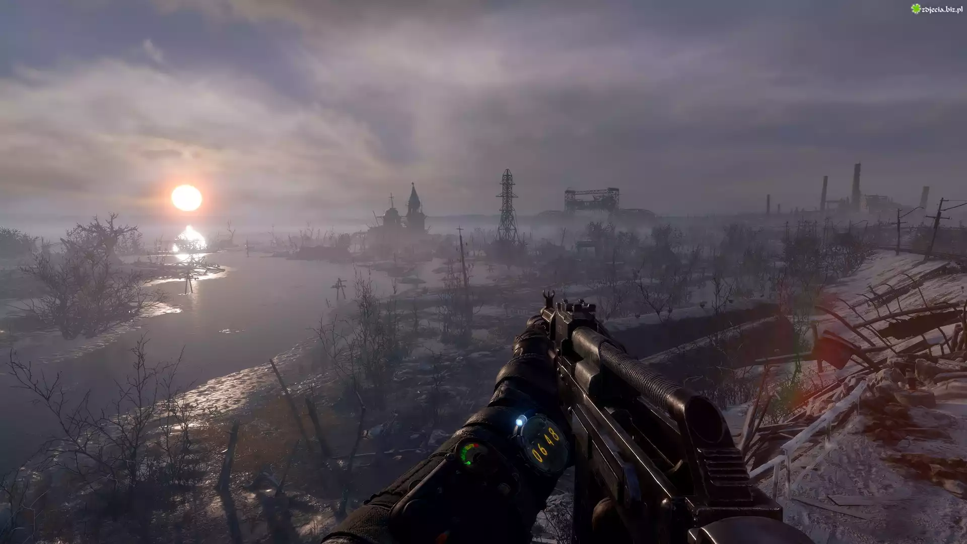 Zdjęcie Gra, Metro Exodus, Rzeka, Słońce, Zniszczone, Miasto