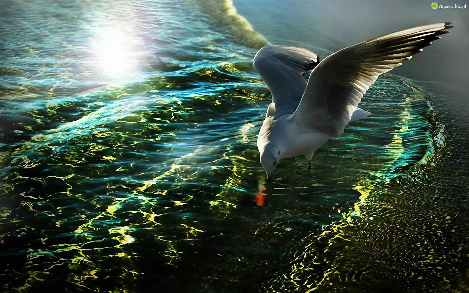 Zdjęcie Mewa, Polowanie, Morze, Blask