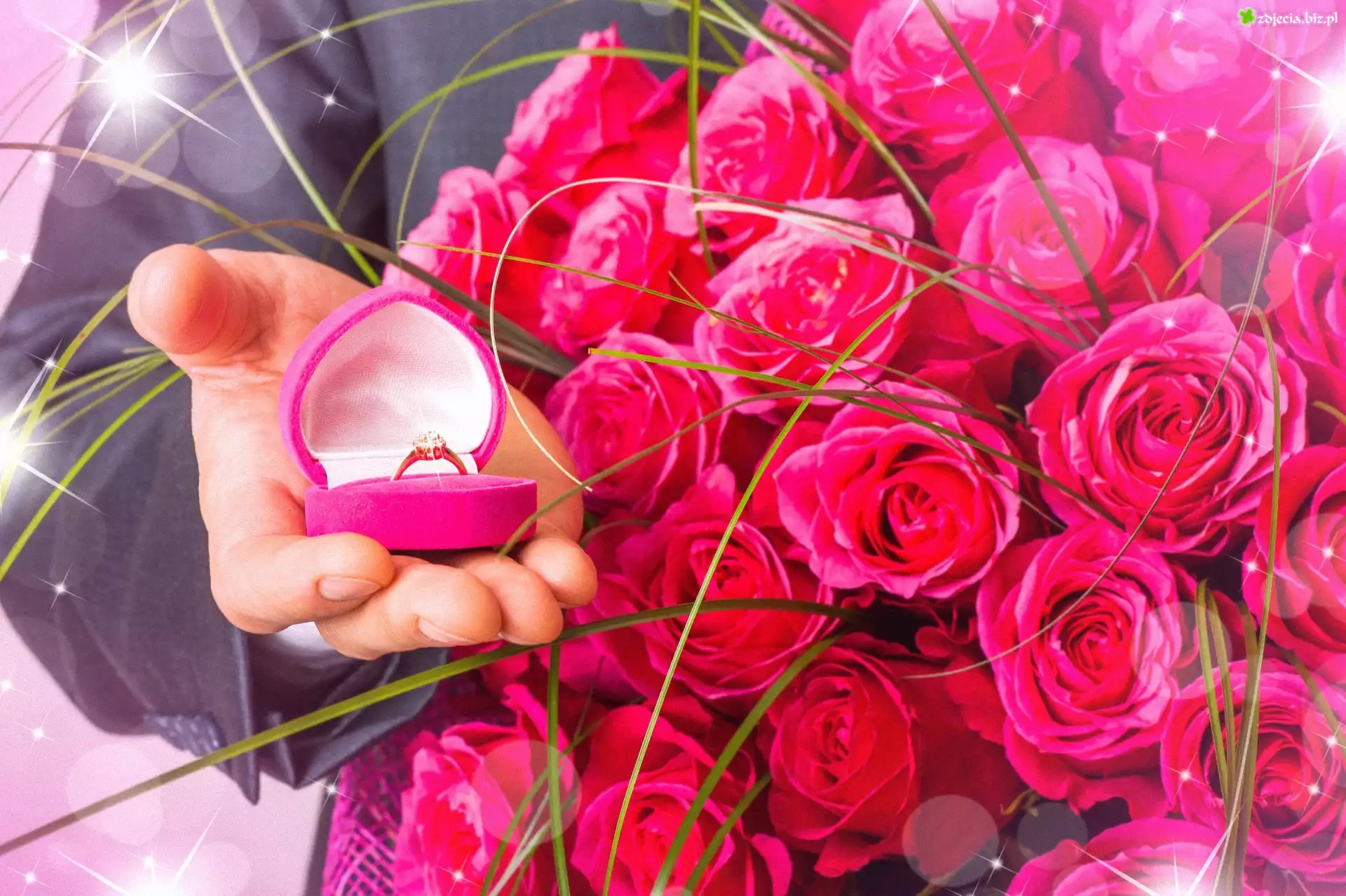 Zdjęcie, Mężczyzna, Pierścionek, Bukiet, Róż