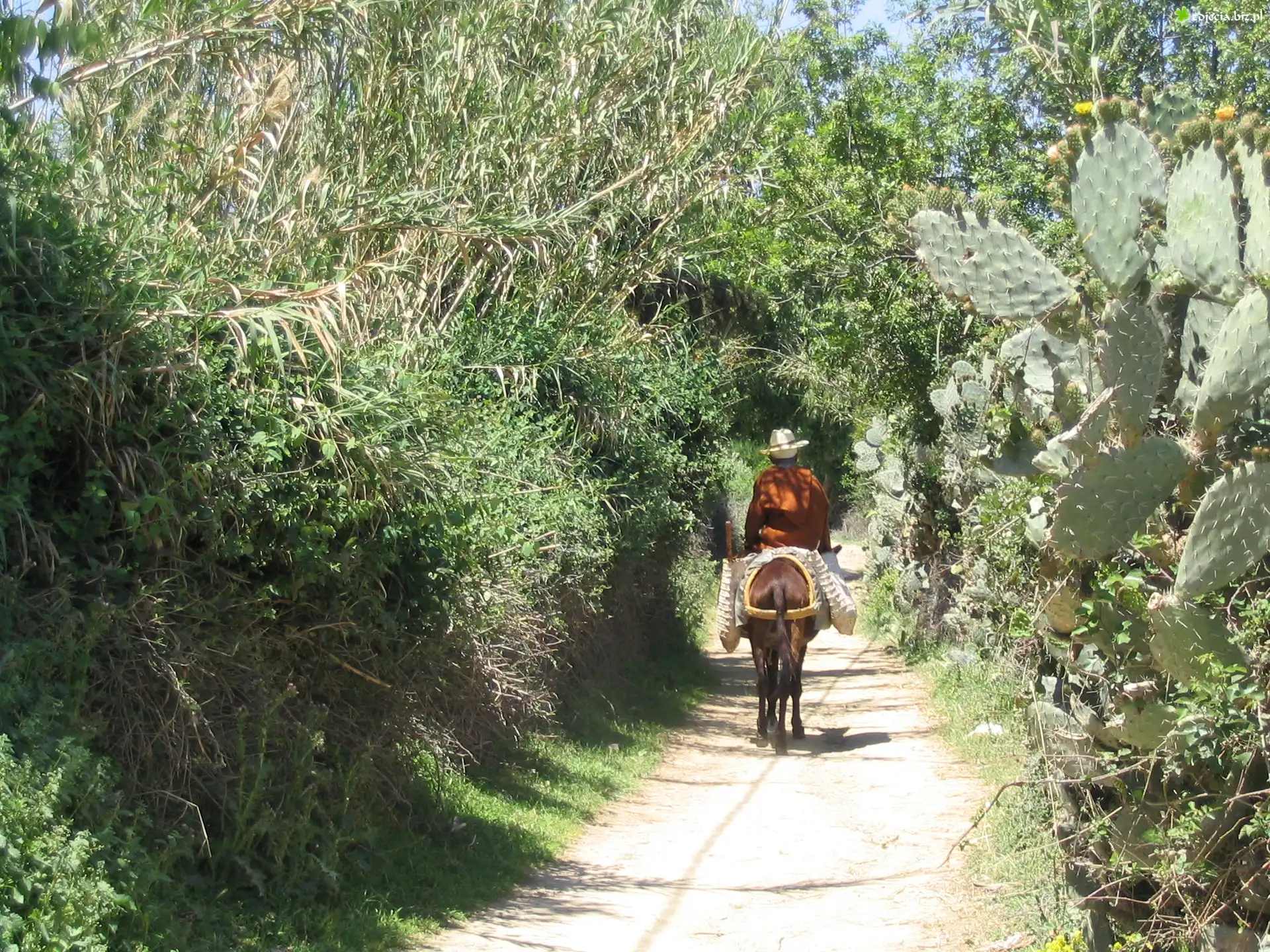 Zdjęcie Mężczyzna, Osiołek, Droga, Roślinność