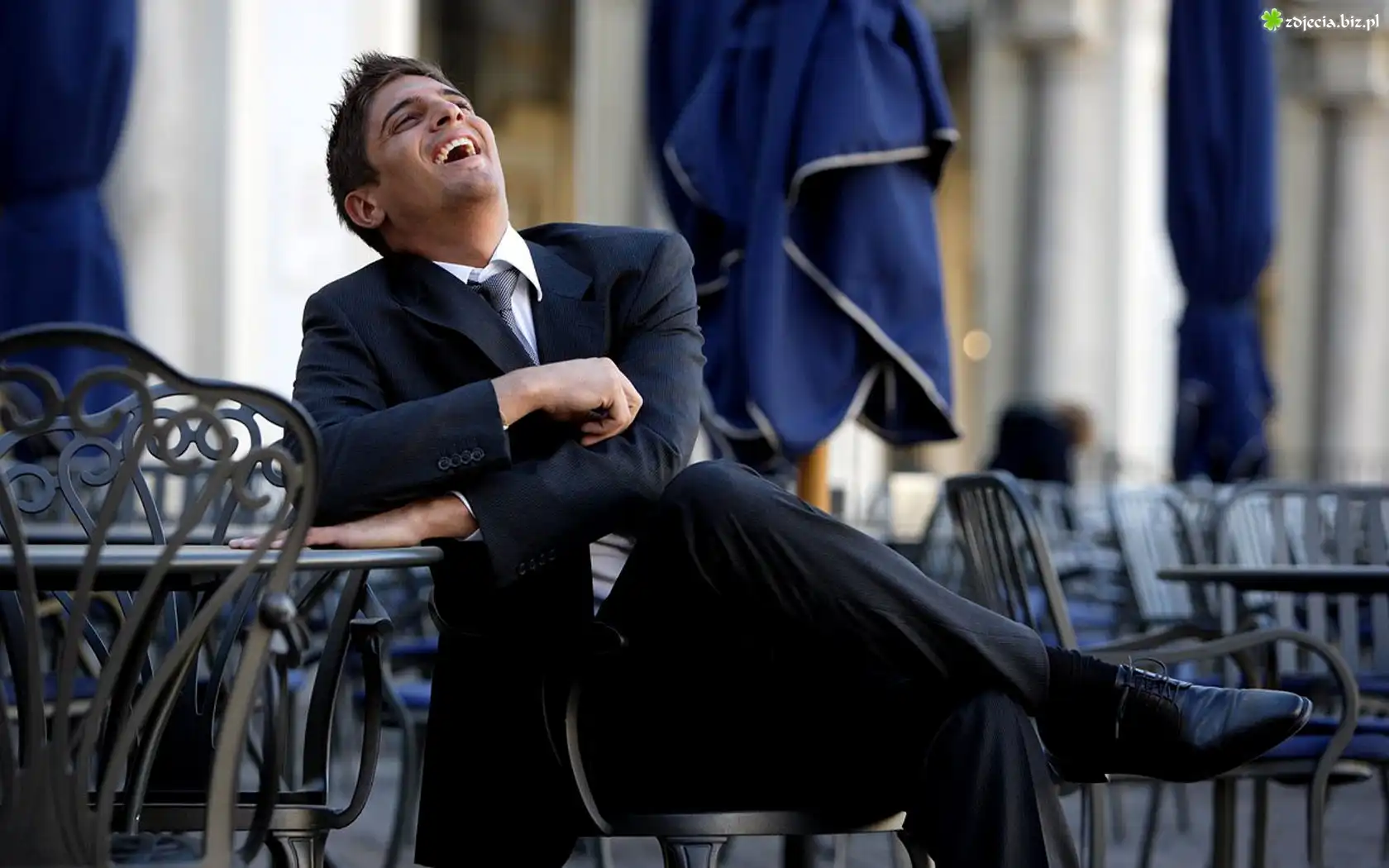 Zdjęcie Mężczyzna, Kawiarenka, Emocje, Śmiech