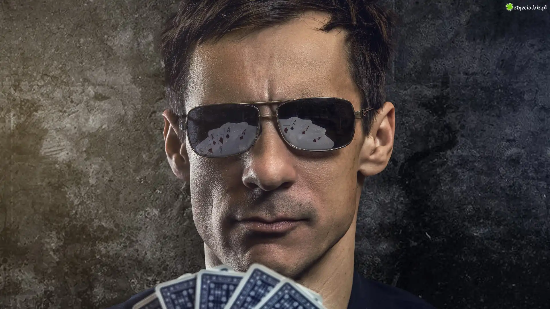 Zdjęcie Mężczyzna, Ciemne, Okulary, Karty, Gra