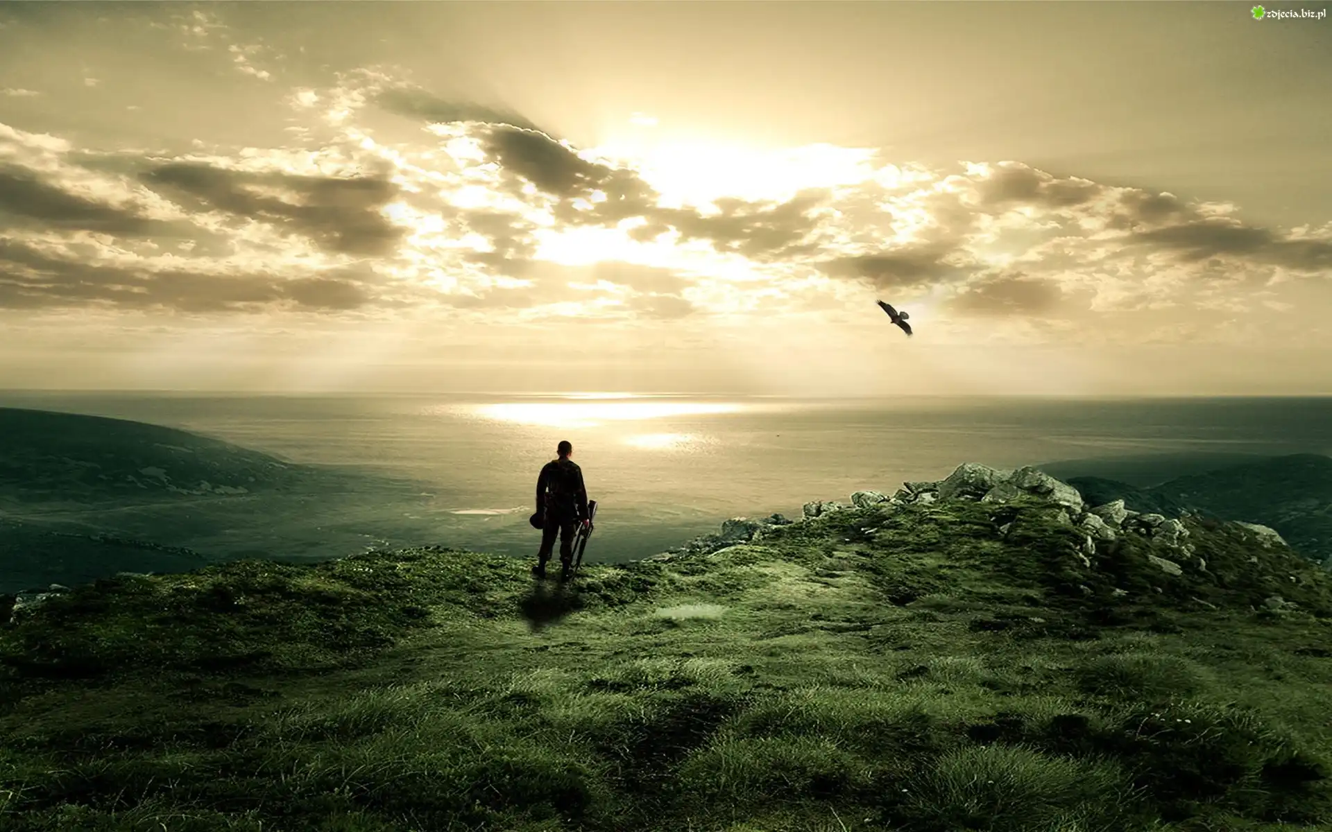 Zdjęcie, Morze, Mężczyzna, Chmury