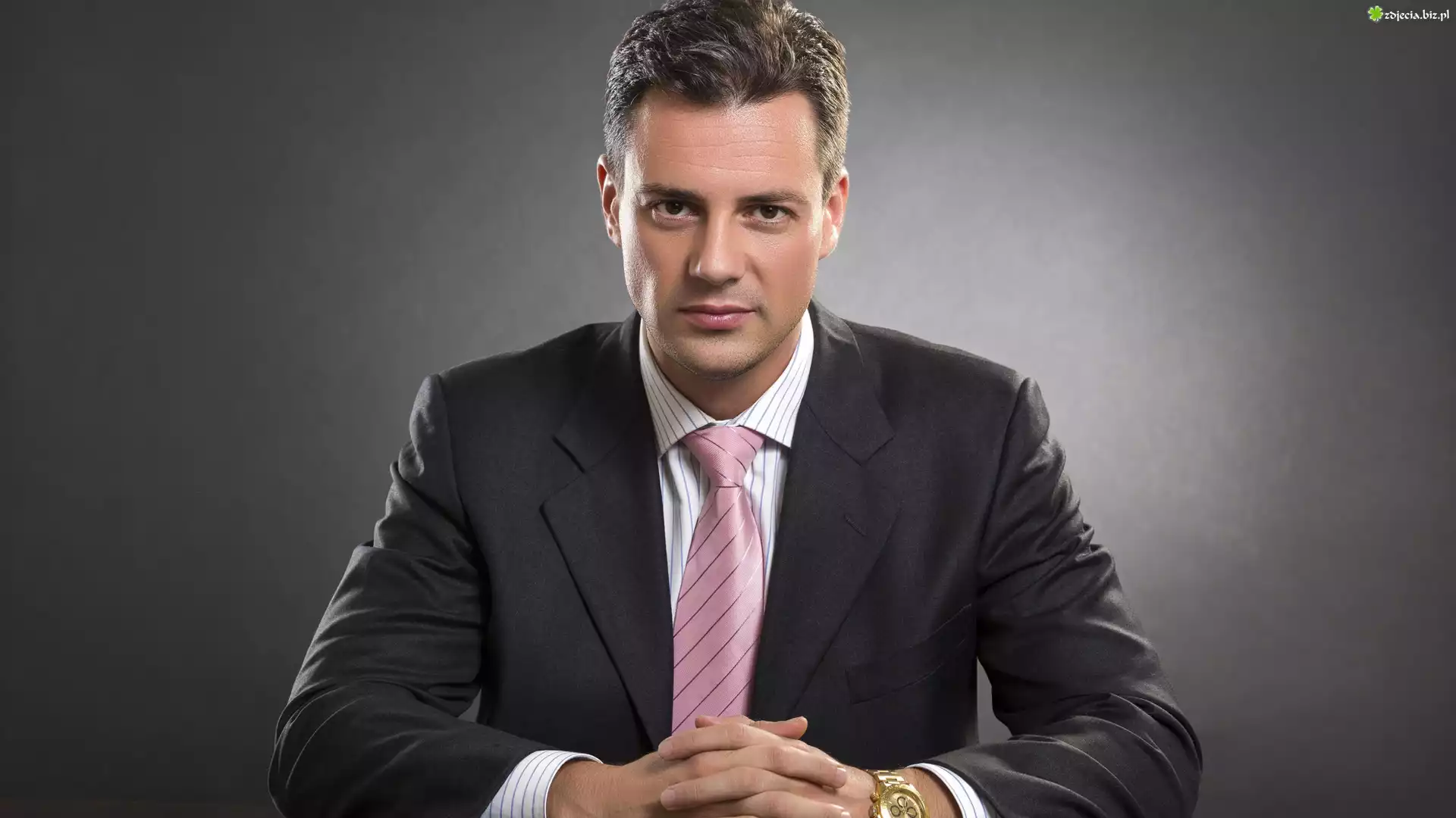 Zdjęcie Mężczyzna, Garnitur, Krawat, Szare tło