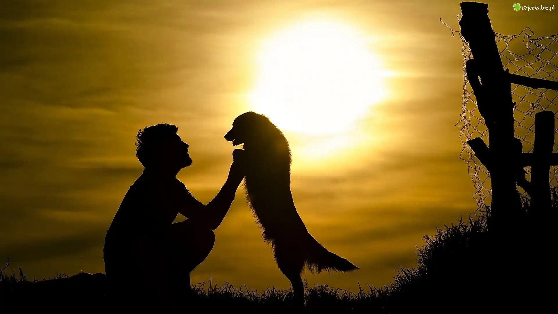Zdjęcie Mężczyzna, Pies, Zachód, Słońca
