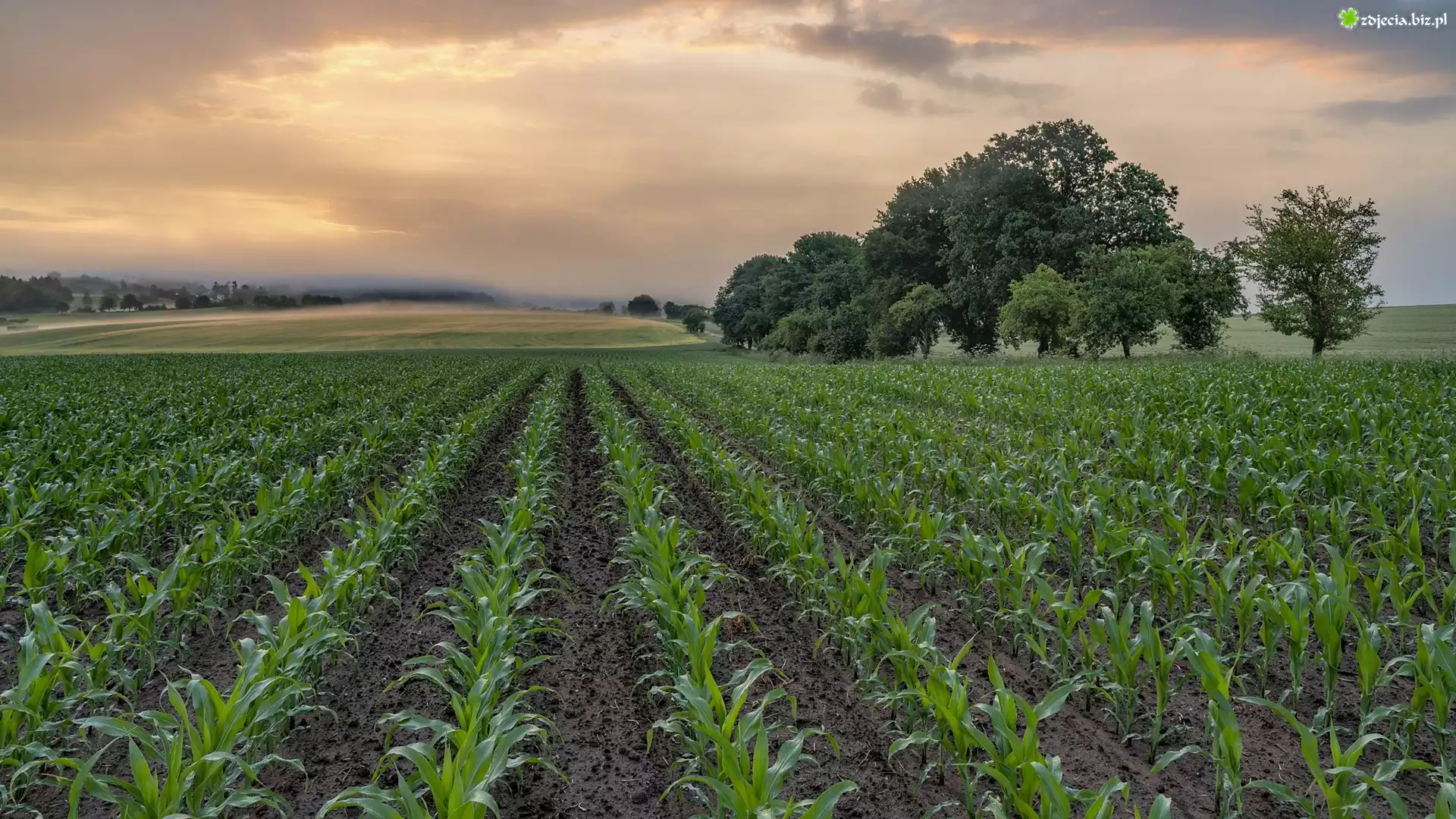 Zdjęcie Drzewa, Pole, Kukurydzy, Mgła