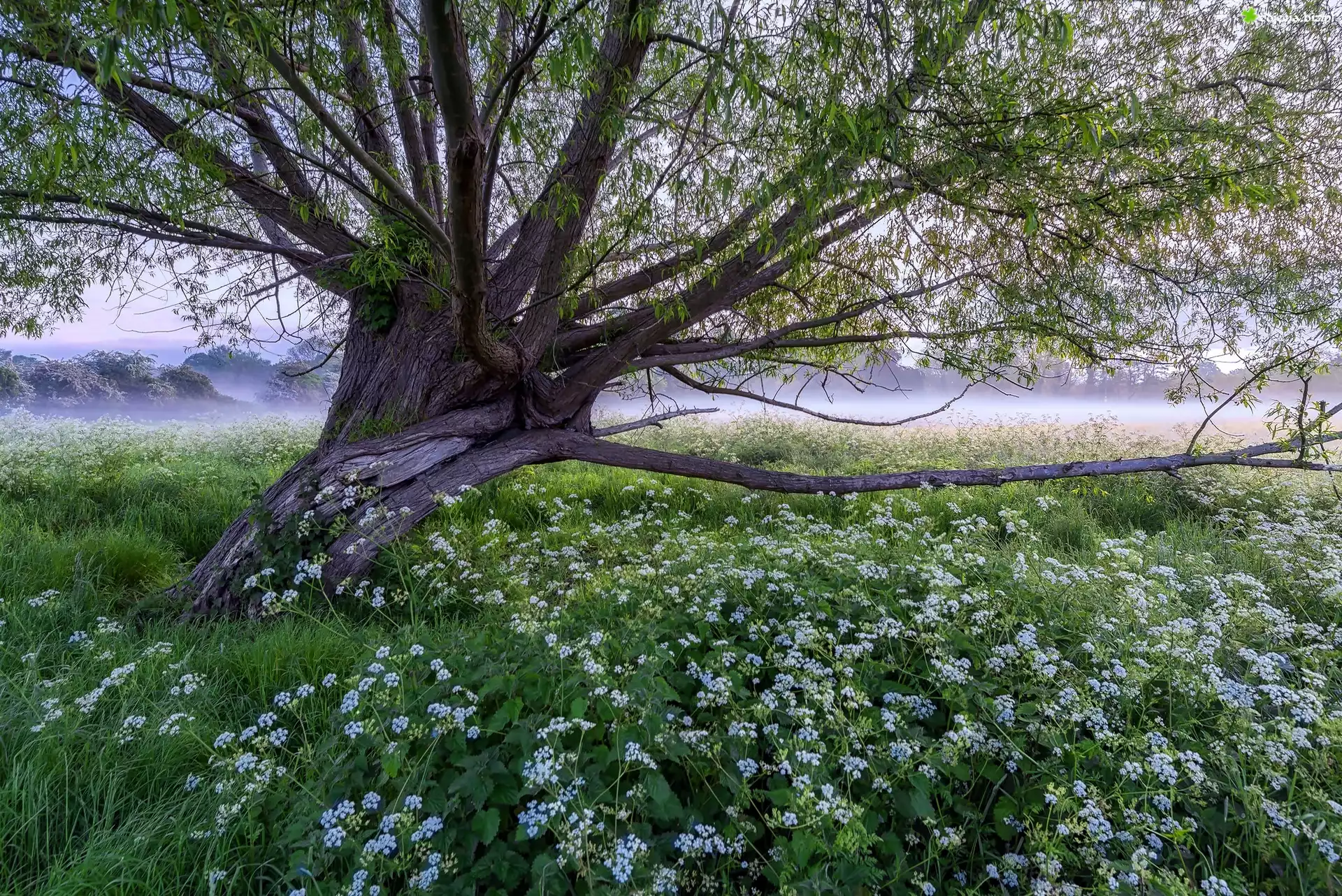 Zdjęcie Drzewo, Mgła, Kwiaty