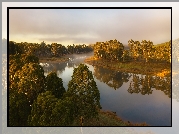 Zdjęcie Rzeka, Zielone, Drzewa, Mgła