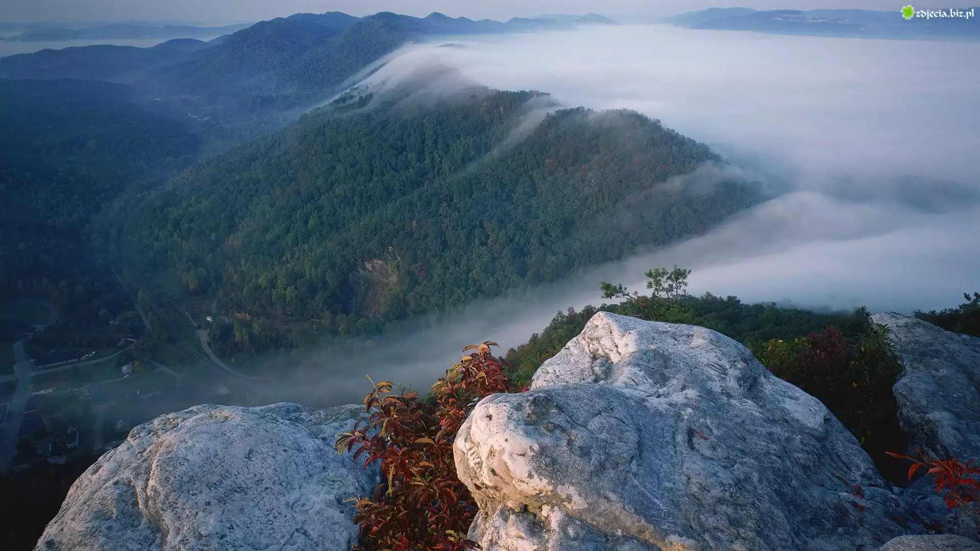Zdjęcie Mgła, Las, Skały, Góry