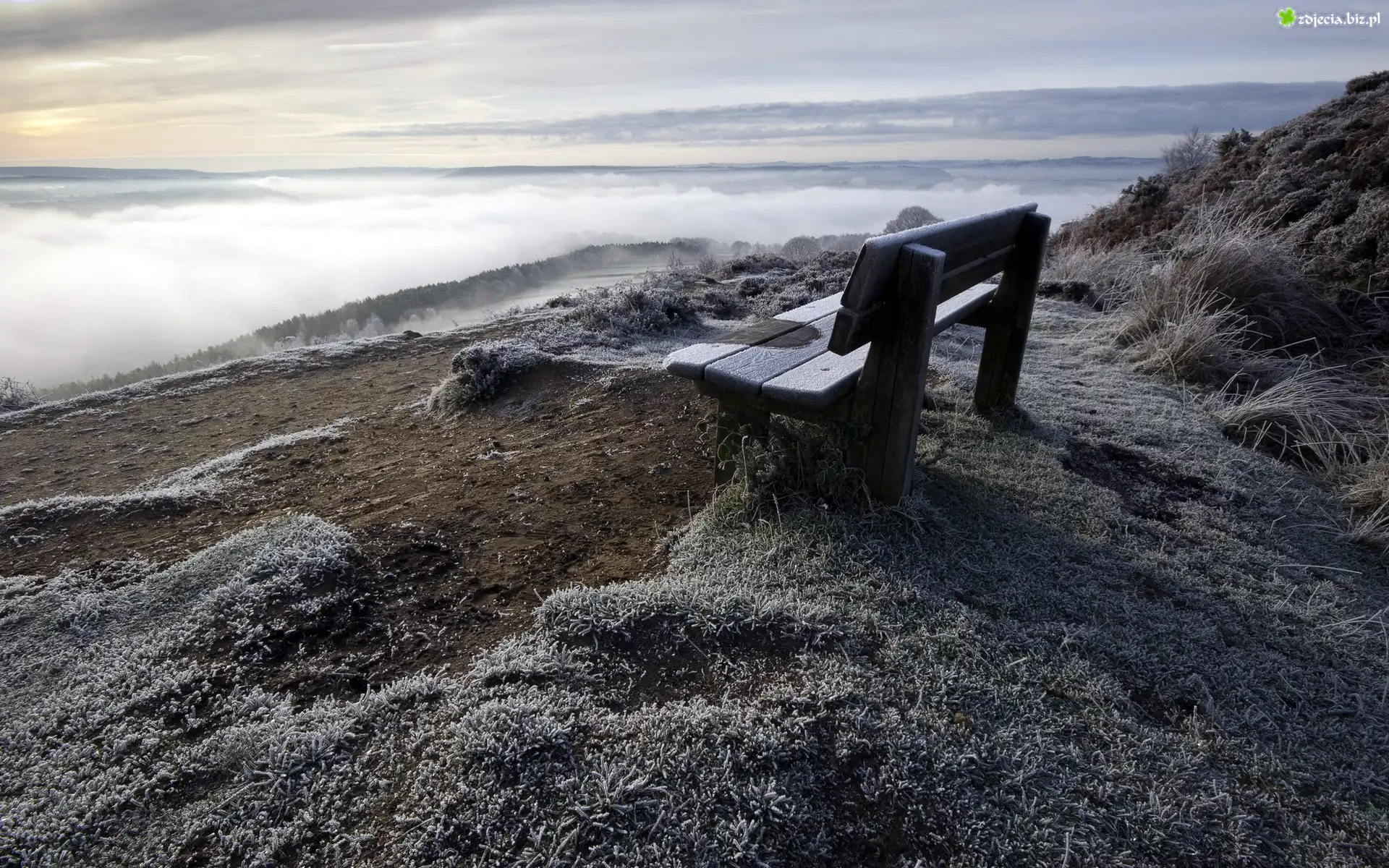 Zdjęcie Zima, Mgła, Ławka