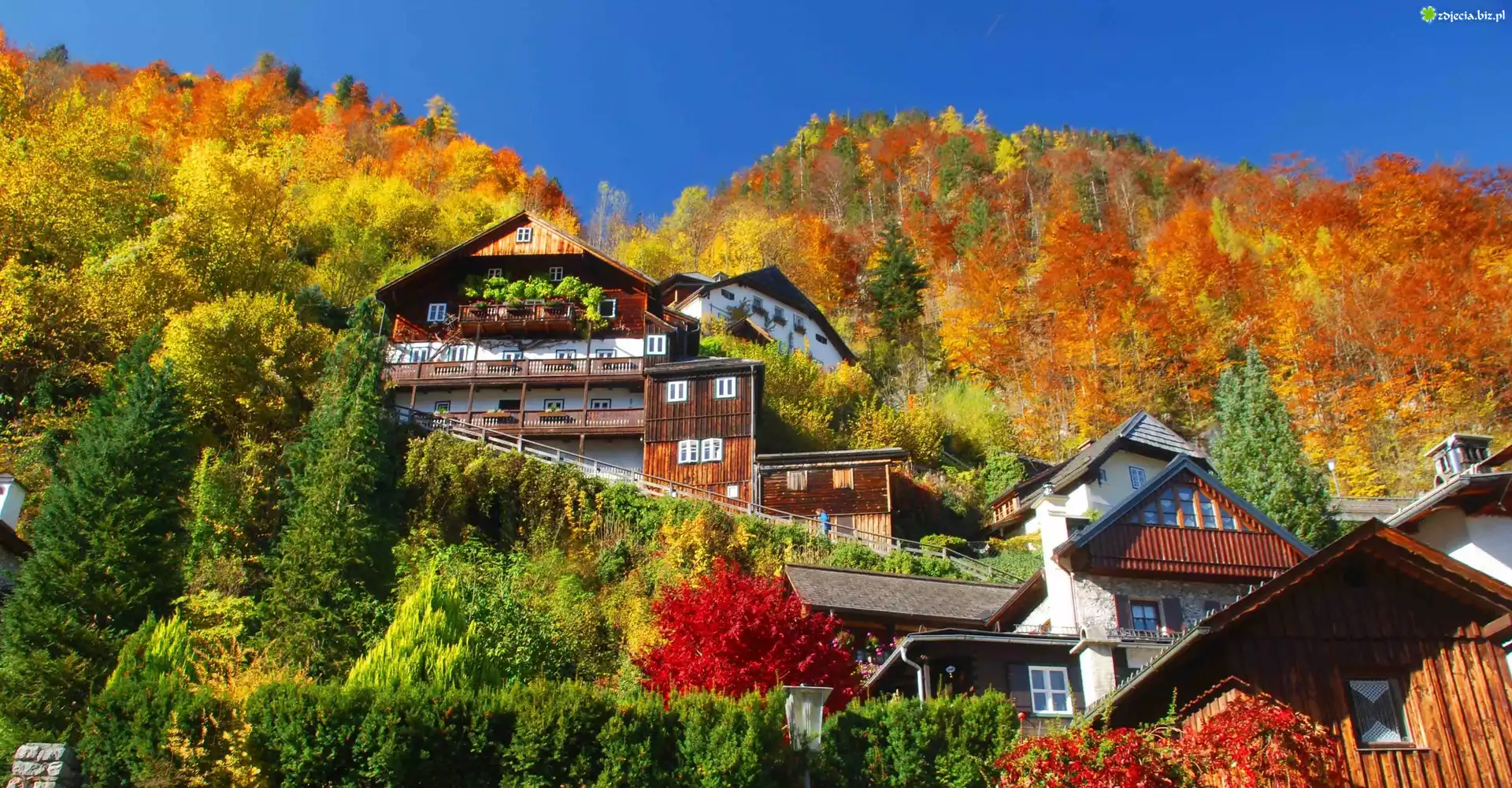 Zdjęcie Austria, Miasteczko Hallstatt, Domy, Góra, Jesień