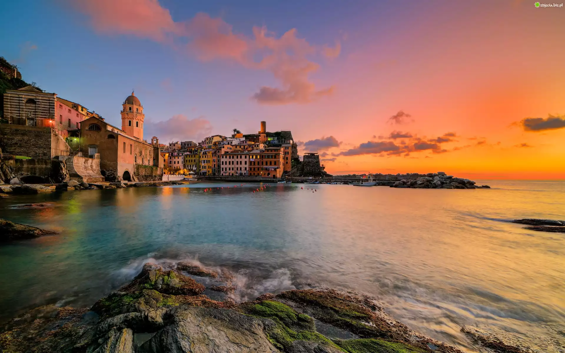 Zdjęcie Miasteczko, Vernazza, Domy, Zachód słońca, Włochy
