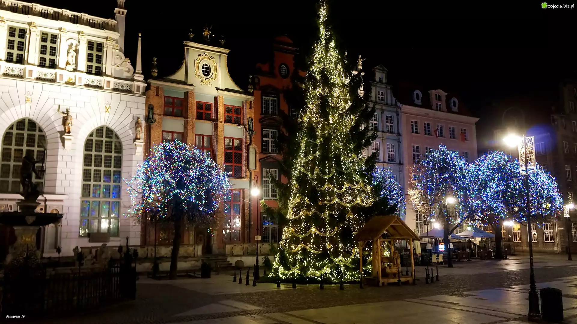 Zdjęcie Polska, Gdańsk, Noc, Choinka, Świąteczne, Drzewa