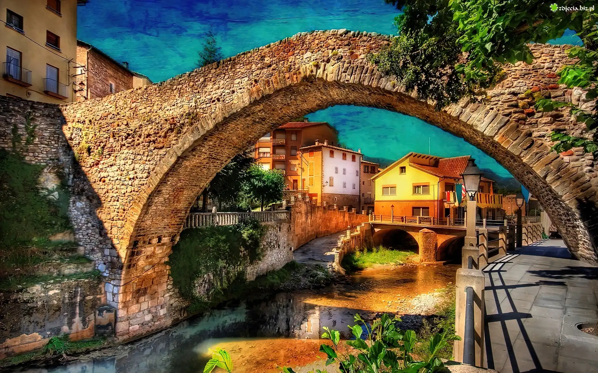 Zdjęcie Miasto, Mosty, Domy, Rzeka