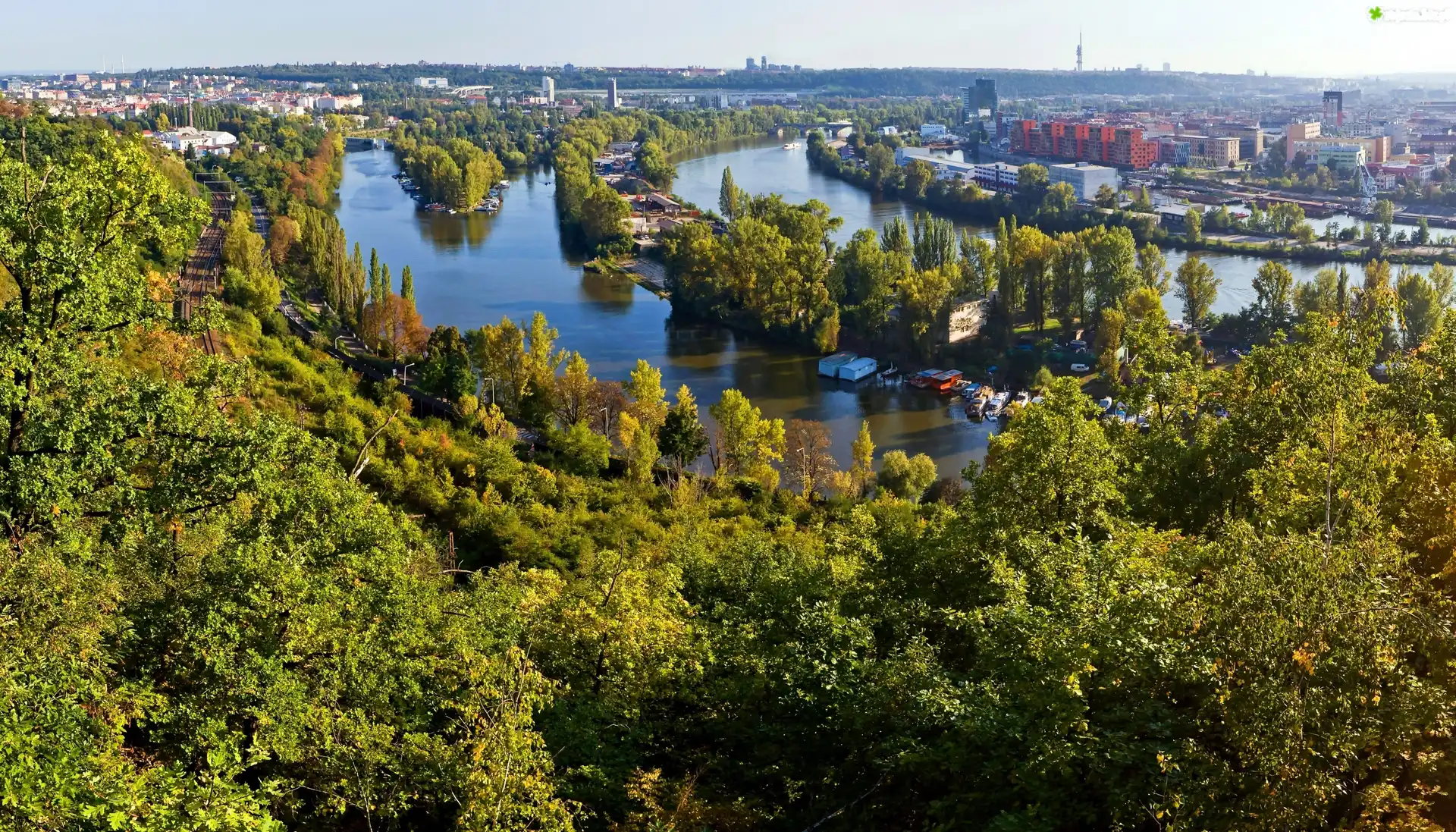 Zdjęcie Miasto, Rzeka, Drzewa, Panorama