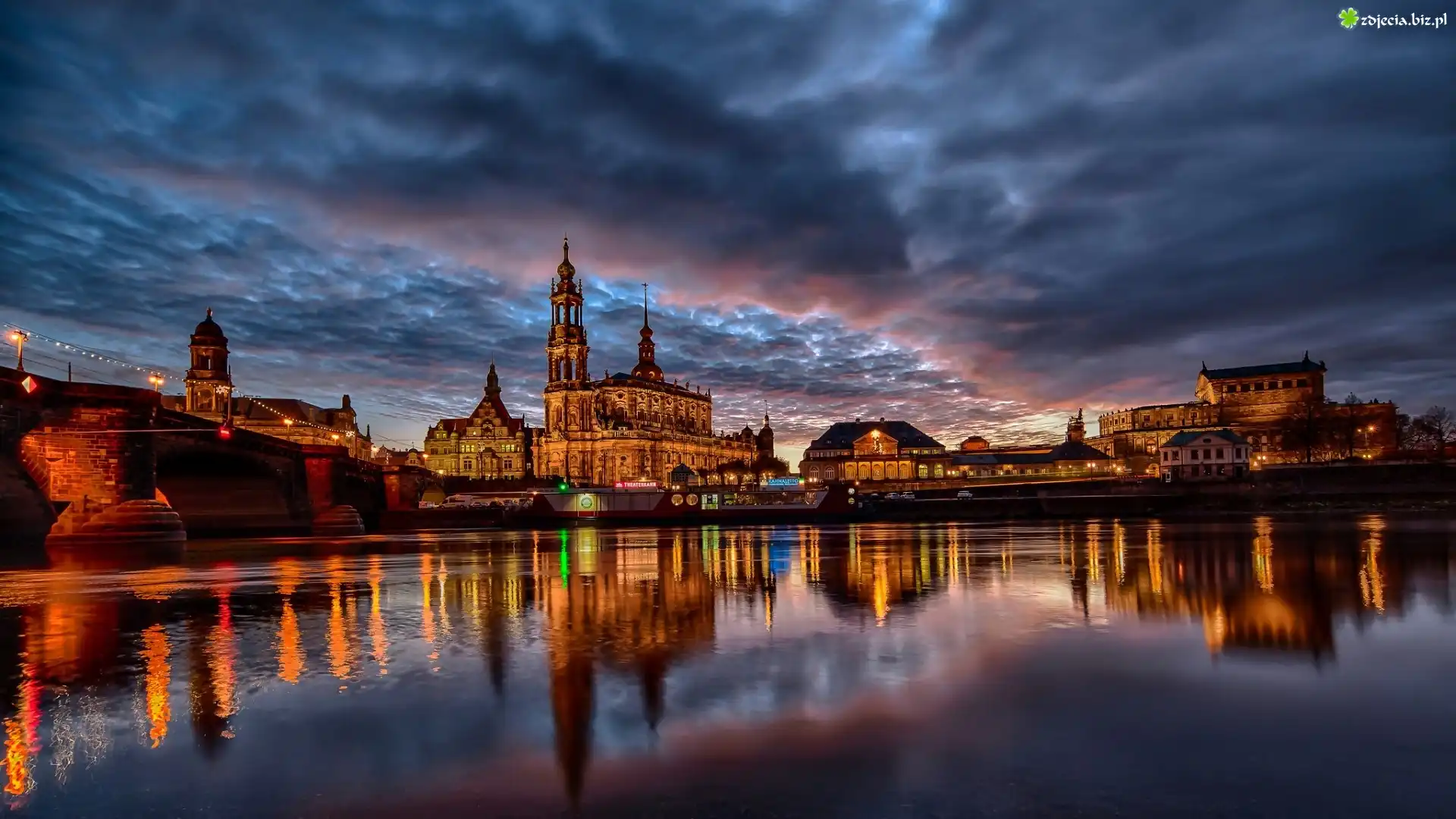Zdjęcie Miasto, Nocą, Rzeka, Zamek