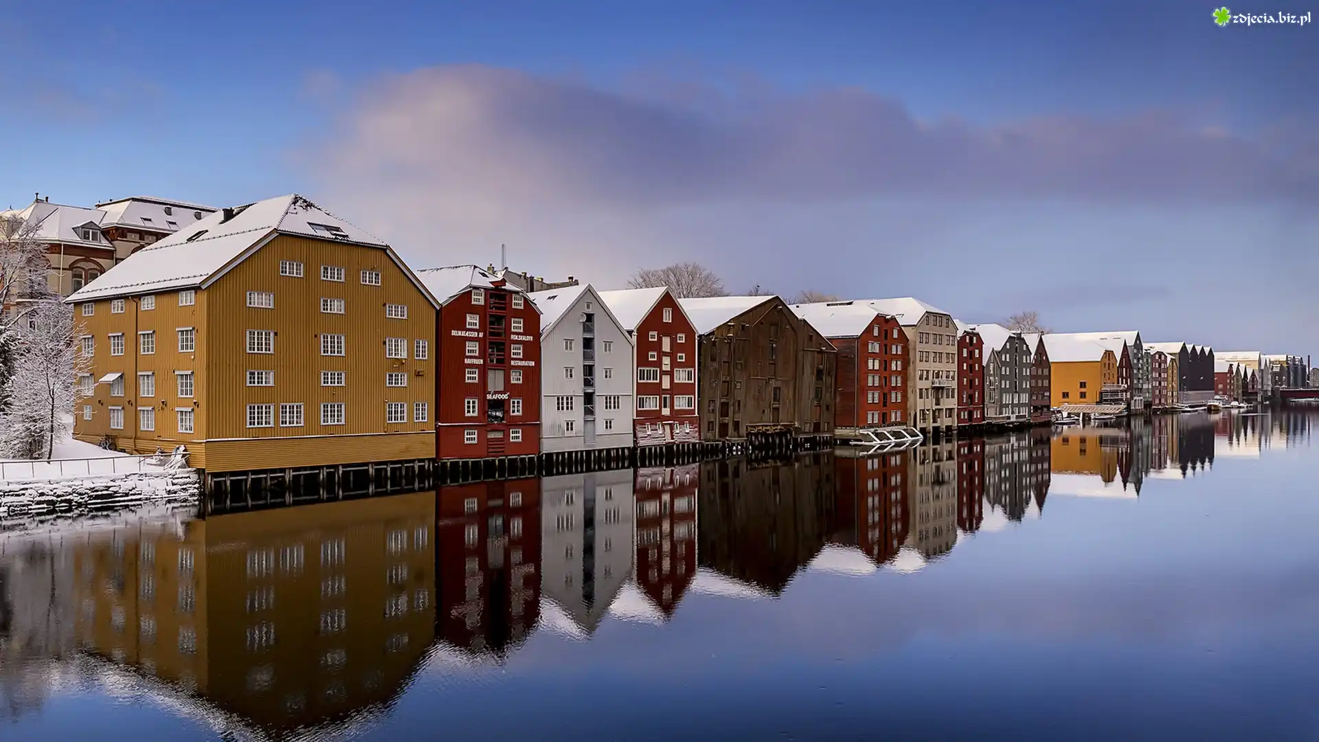 Zdjęcie Miasto Trondheim, Norwegia, Domy, Rzeka Nidelva