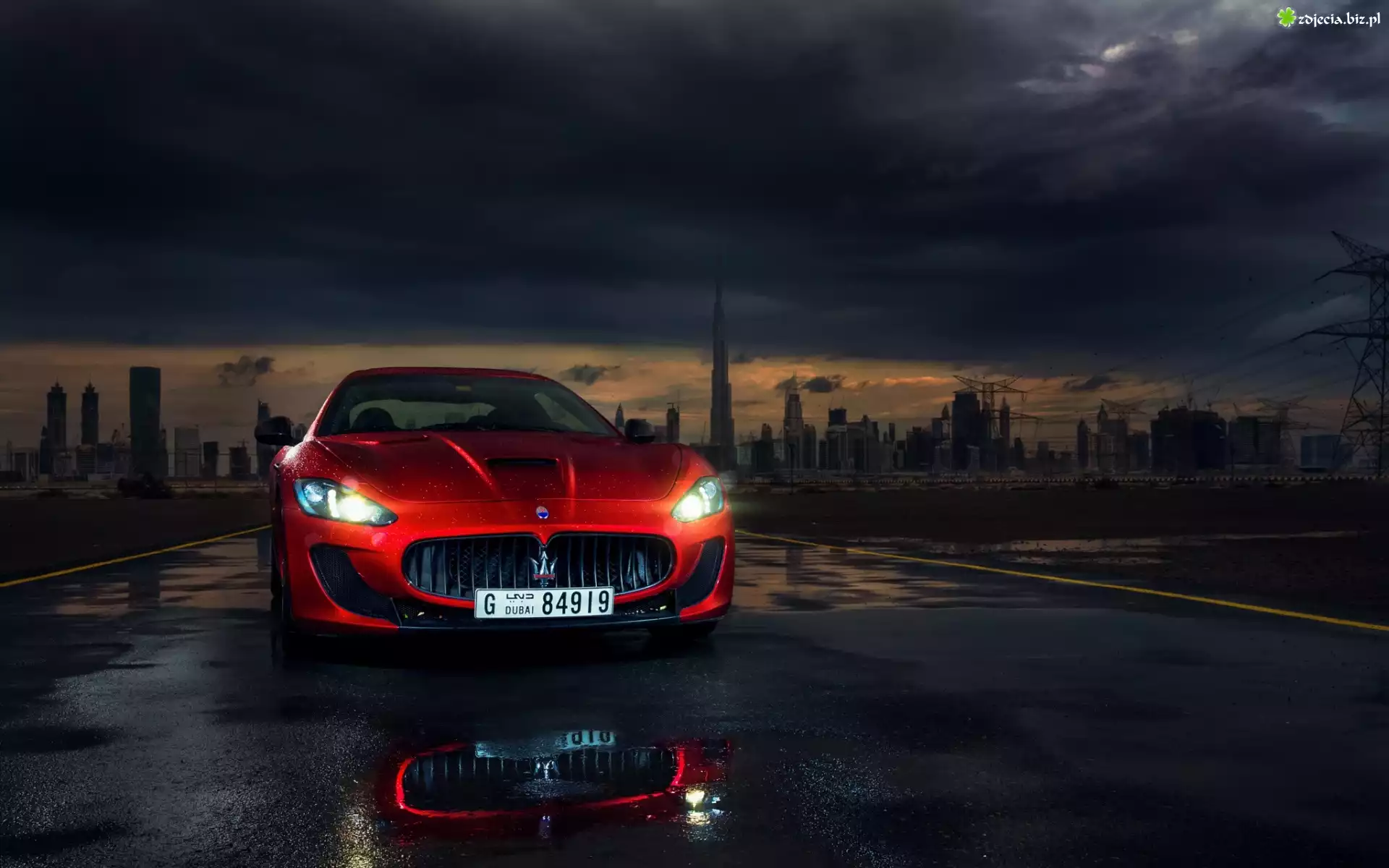 Zdjęcie Czerwony, Sportowy, Samochód, Maserati, Gran, Turismo, Droga, Noc, Miasto