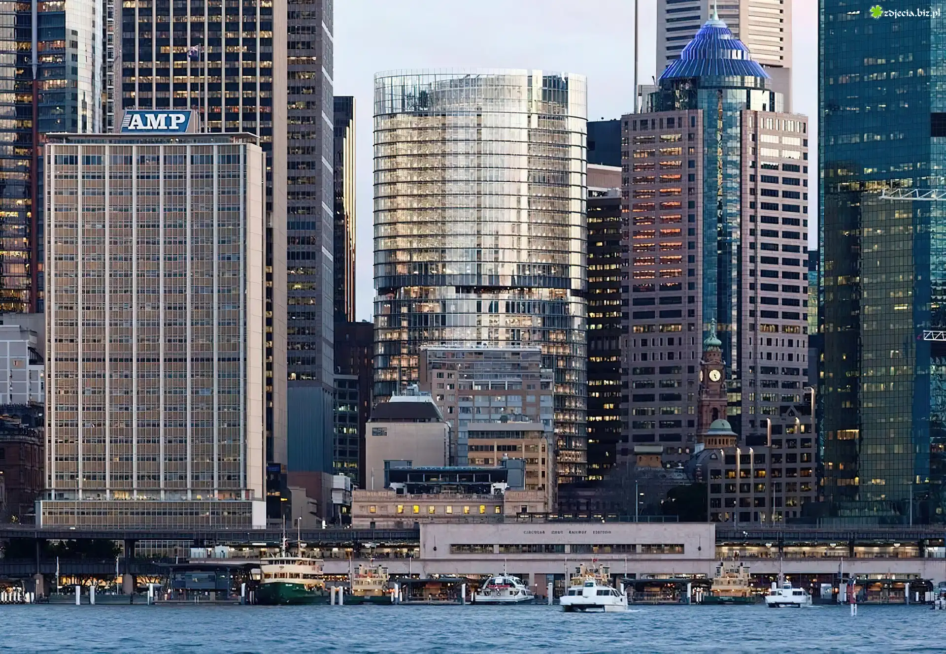 Zdjęcie Miasto, Nad, Wodą, Wieżowce