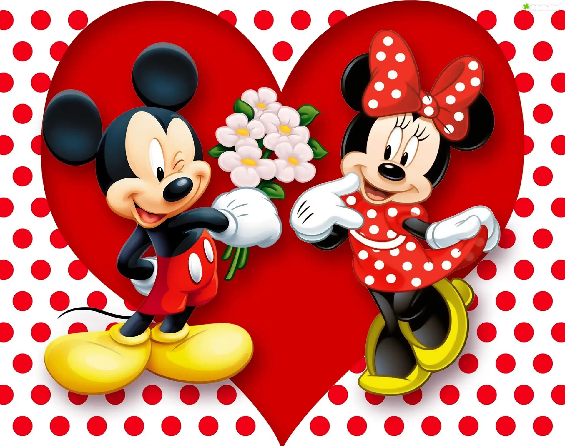 Zdjęcie Minnie, Mickey, Rysunek, Disney, Miłość, Serce, Dla Dzieci