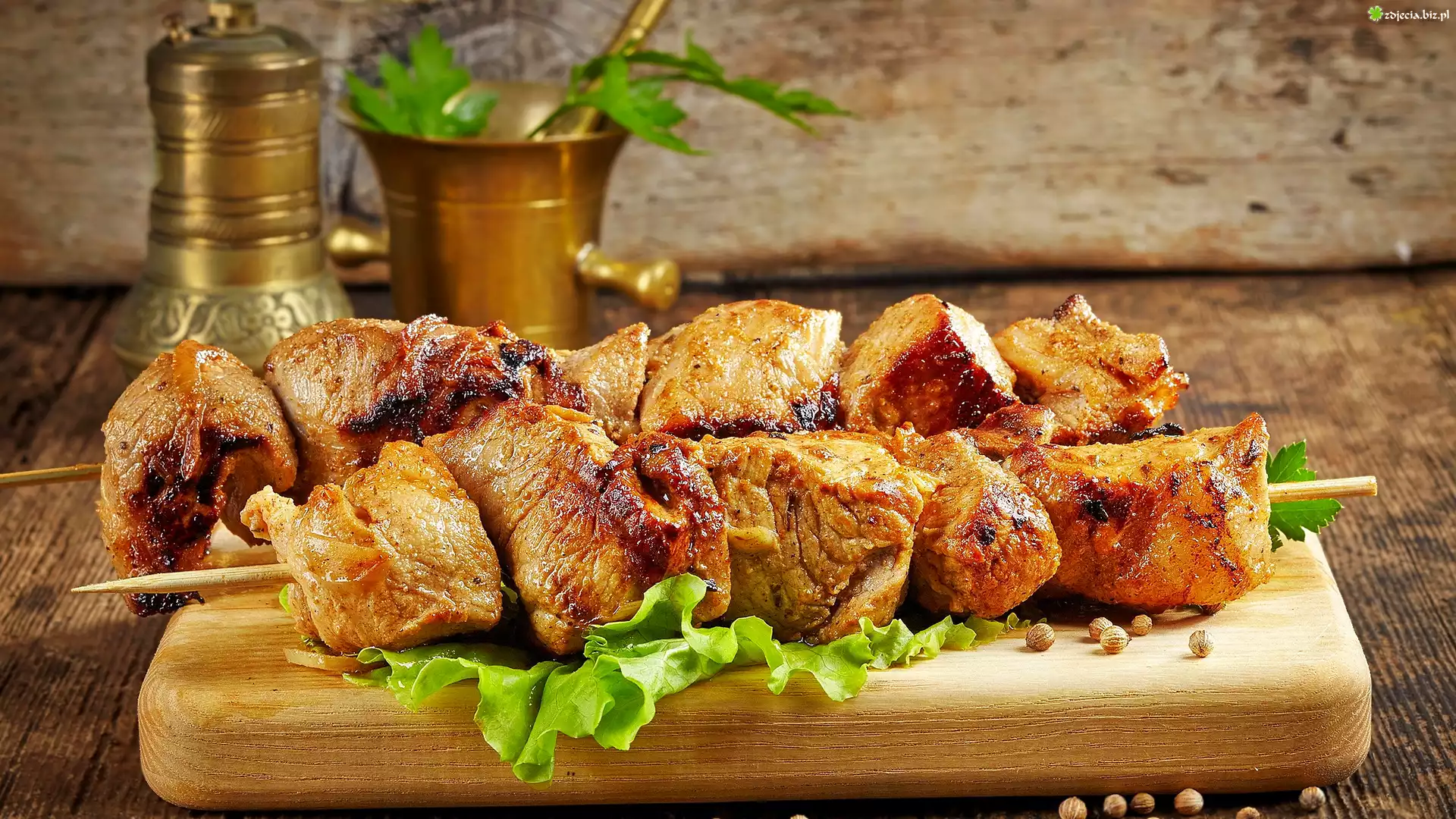 Zdjęcie Mięso, Szaszłyki, Sałata, Deska
