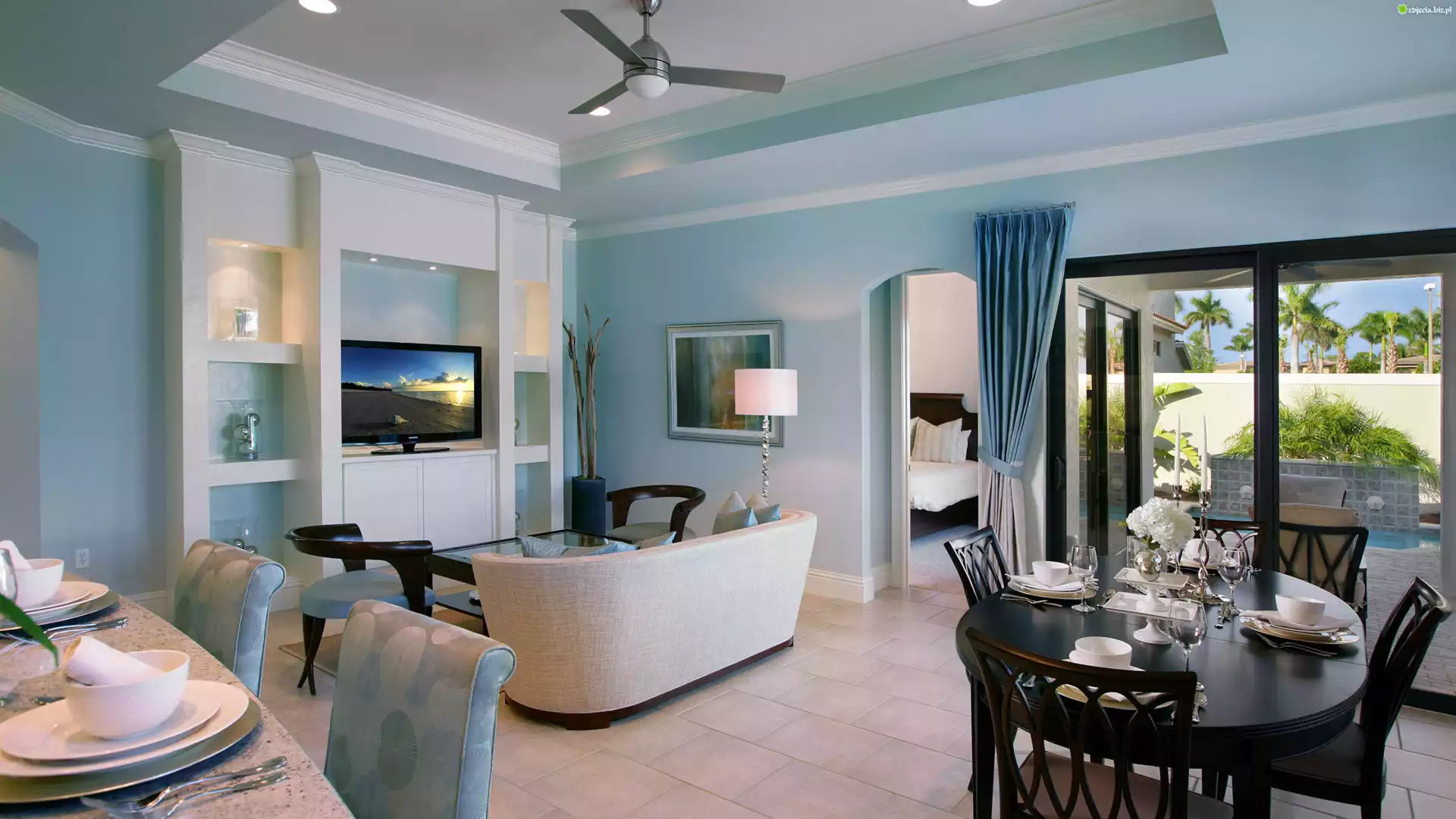 Zdjęcie, Mieszkanie, Jadalnia, Wejście, Taras, Błękit