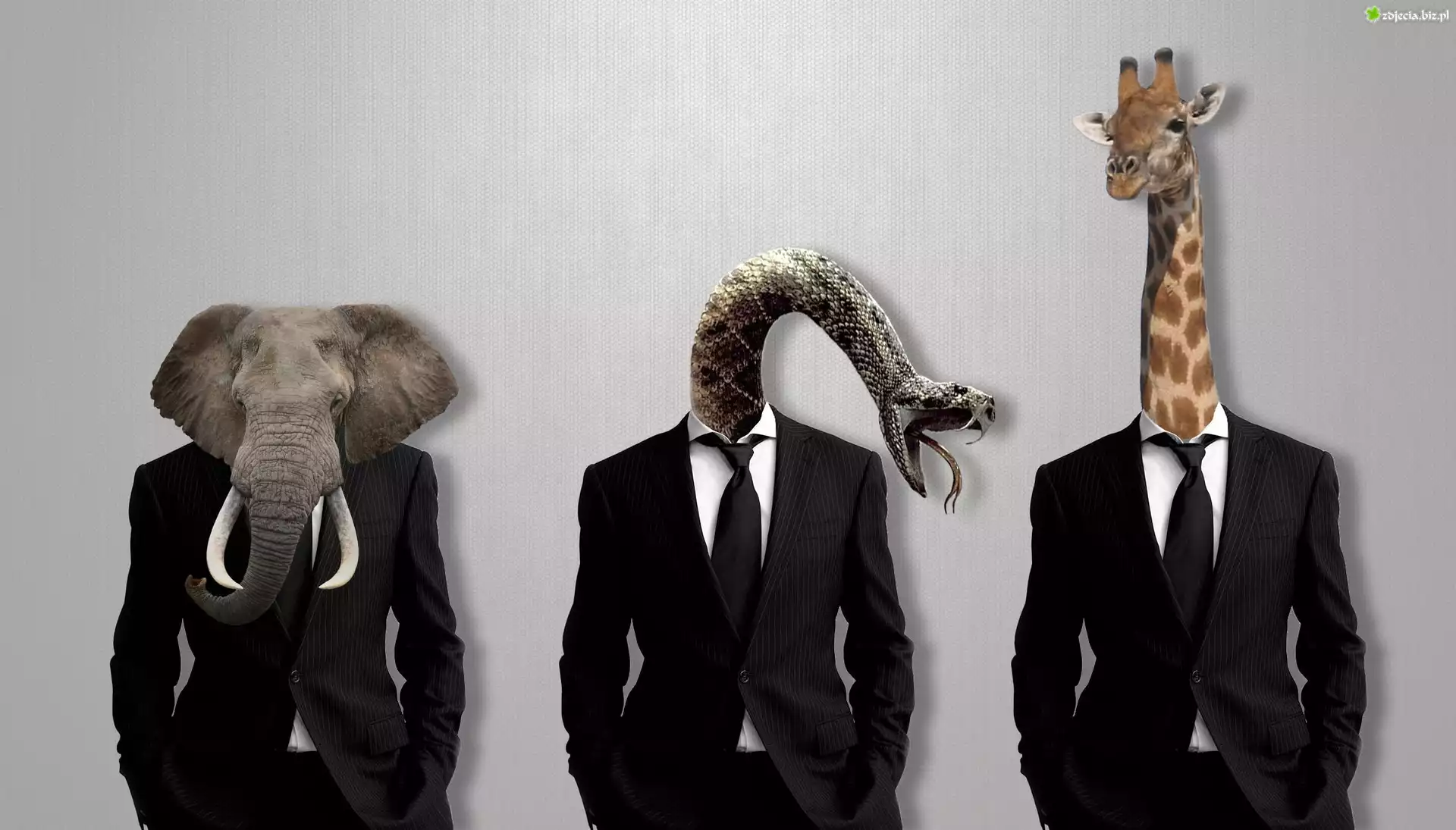 Zdjęcie Śmieszne, Słoń, Żyrafa, Wąż, Czarne, Garnitury
