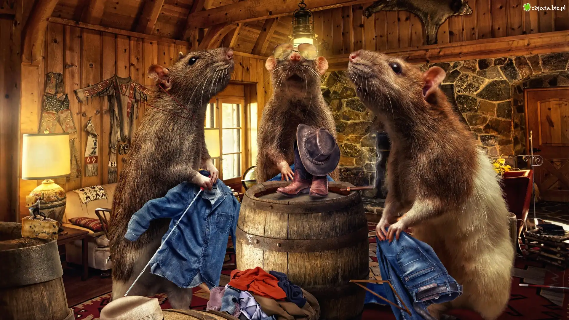 Zdjęcie Śmieszne, Szczury, Pokój, Beczka, Lampa, Ubrania