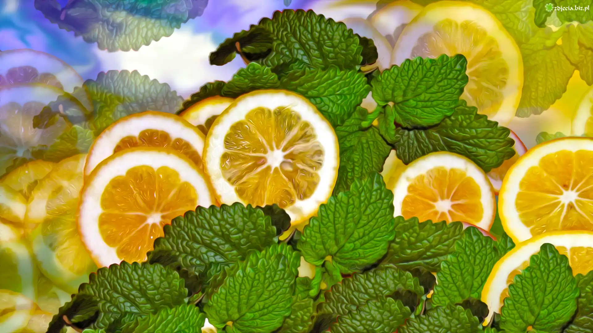 Zdjęcie Cytryny, Mięta, Grafika