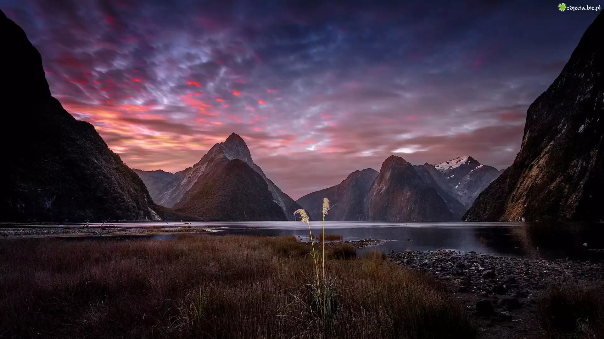 Zdjęcie Trawy, Fiord, Zatoka Milforda, Góry, Nowa Zelandia