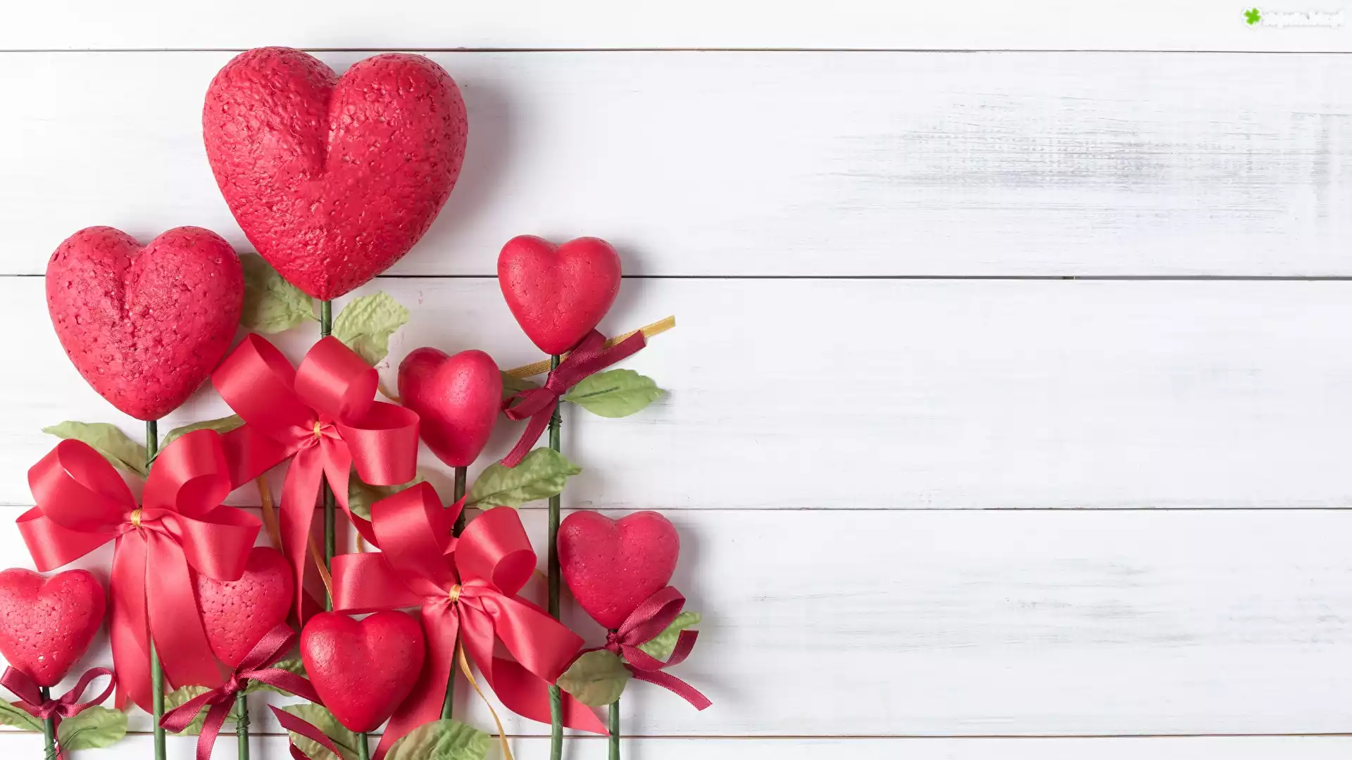 Zdjęcie, Serca, Gałązki, Listki, Czerwone, Kokardki, Białe, Deski, Miłość