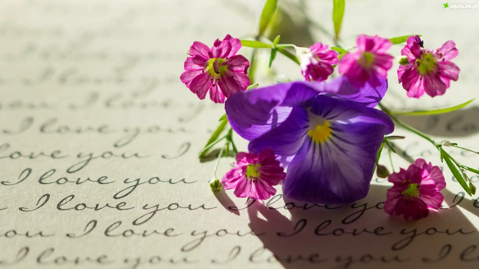 Zdjęcie Miłosne, Napis, Kwiaty, Bratek