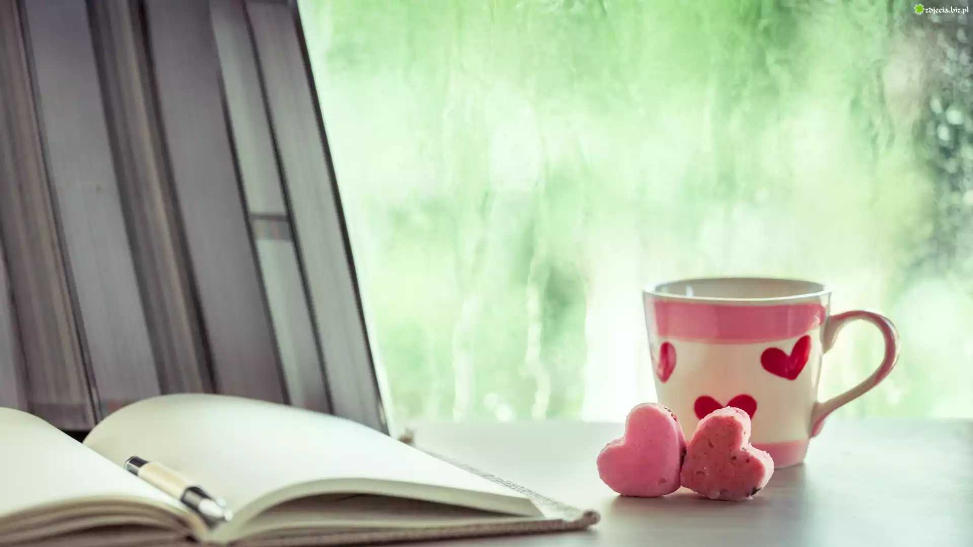 Zdjęcie Miłosne, Kubek, Dwa, Serca, Zeszyt, Długopis