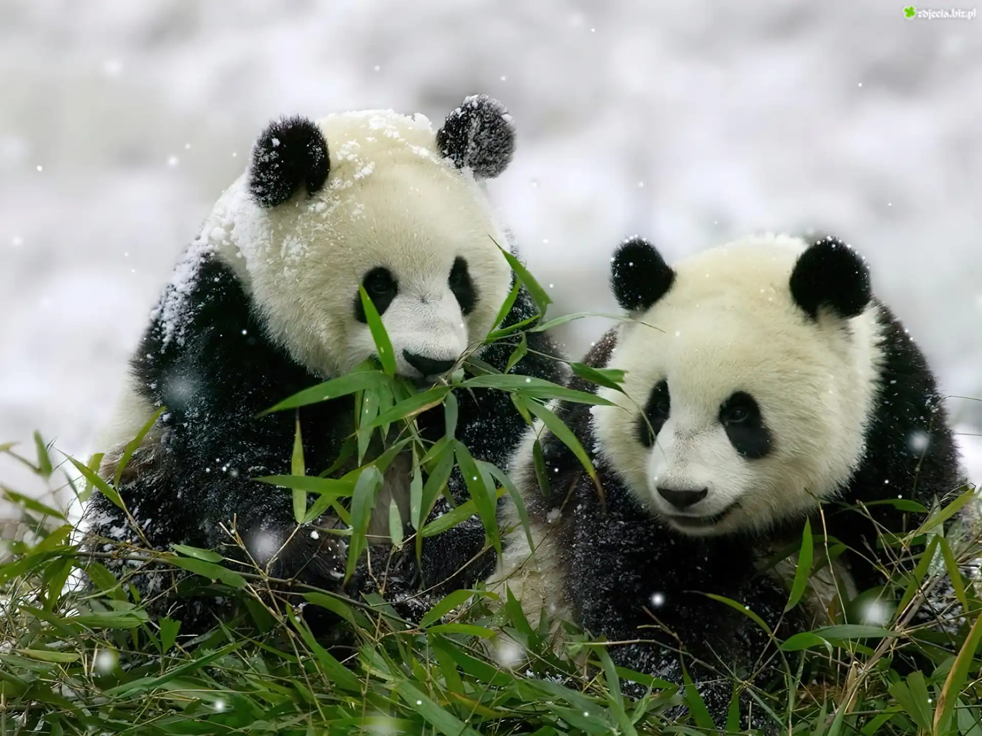 Zdjęcie Misie, Pandy, Zima, Trawa